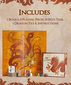 Hermosos Dragones y un Fénix te llevan en una aventura de estrategia reforzada por la suerte, a lo largo de un Camino sinuoso que cambia en cada juego. Visualmente atractivo y muy elegante, los jugadores crean hábilmente sus propios Caminos. Coloca sabiamente tus losetas y desliza tu Peón de Dragón a lo largo del Camino y sé el último jugador en el tablero para ganar. Divertido para 2-8 jugadores y se juega en menos de 20 minutos, para que incluso las familias más ocupadas tengan tiempo para jugar. Del fabricante Crea tu propio viaje con Tsuro, el Juego del Camino. Coloca una loseta y desliza tu piedra a lo largo del camino creado, pero ten cuidado. Los caminos de otros jugadores pueden llevarte en la dirección incorrecta, o fuera del tablero por completo. Encuentra tu camino sabiamente para tener éxito. Sigue el camino – tu viaje comienza aquí.