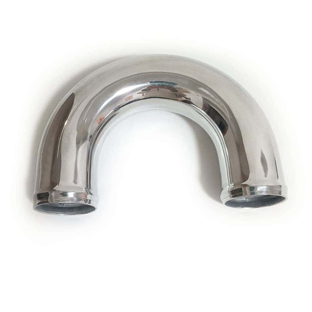 Tubo de forma U de aluminio de 180 grados de 2.75″ de diámetro exterior para intercooler, con longitud de 300mm (11.81 pulgadas) y OD de 70 mm (2.75 pulgadas), con un grosor de 0.079″ (2 mm). Fabricado con aleación de aluminio 6061 de alta calidad y acabado pulido. Todos los extremos del tubo están biselados para un reemplazo directo de los tubos del motor. La superficie interna pulida mejora el flujo de entrada de aire con una menor turbulencia y una mejor disipación del calor en comparación con los tubos estándar. Ideal para sistemas de admisión de aire, sistemas de enfriamiento y configuraciones de tuberías de intercooler turbo.