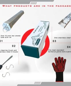 Diseñado para un rendimiento duradero, este tubo de ahumador produce humo continuo durante más de 5 horas utilizando pellets de madera. Ideal para ahumar en caliente costillas, brisket o ahumar en frío queso, nueces y verduras. La tapa de bloqueo del tubo de ahumador mantiene los pellets de madera de forma segura durante la parrilla, eliminando derrames molestos. Funciona vertical u horizontalmente en parrillas de pellets, gas, carbón o ahumadores eléctricos. Incluye una bandeja de acero inoxidable resistente a la oxidación para atrapar cenizas y brasas, manteniendo la limpieza de la parrilla. Compatible con todos los tubos de ahumador hexagonales estándar de 12 pulgadas. Diseñado para trabajar con todas las parrillas y ahumadores, este tubo de ahumador funciona perfectamente con parrillas de gas, eléctricas, de carbón, ahumadores. Combínalo con pellets de cereza, nogal americano, manzana o mezquite para sabores intensos. Hecho con acero inoxidable de alta calidad para durabilidad y bordes pulidos para seguridad. Envíos en un elegante embalaje listo para regalo, una actualización práctica para entusiastas de la barbacoa, papás o regalos de vacaciones.
