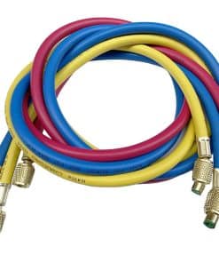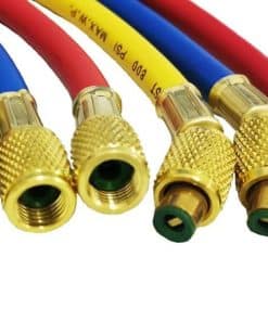 Información del producto: Compatible con la mayoría de otros refrigerantes: R410a, R134a, R404a, R22, R12 y R502. Conexión de manguera: 1/4″ hembra. Presión de trabajo máxima: 800 PSI. Presión de explosión: 4000 PSI. Longitud: 60″/150cm. Color: Azul, Rojo, Amarillo. Material: Metal y Goma. Lista de paquetes: 1 x Manguera de Recarga R410A (Azul), 1 x Manguera de Recarga R410A (Amarilla), 1 x Manguera de Recarga R410A (Roja), 3 x Válvula de Cierre de Latón.