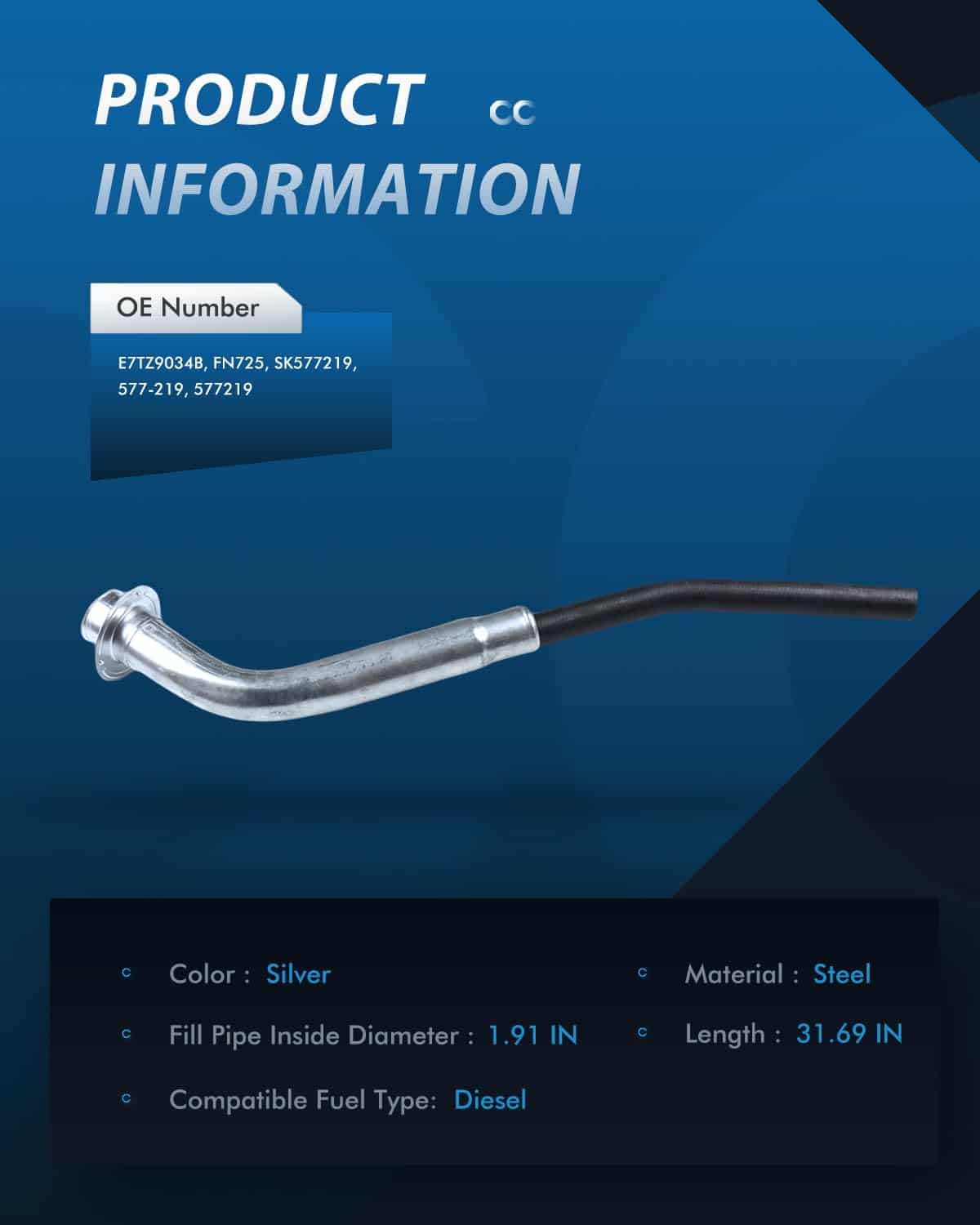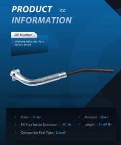 Tubo de cuello de llenado de tanque de gasolina ECCPP E7TZ9034B FN725 para Ford F-150 1987-1996, Ford F-250 1987-1997, Ford F-350 1990-1997. Hecho de acero con baja permeabilidad de combustible para prevenir la evaporación de gasolina y garantizar la seguridad durante el reabastecimiento. Reemplazar el viejo tubo de cuello de llenado es esencial para evitar fugas de combustible, fallas en la bomba de combustible y obstrucciones en la inyección de combustible. Ligero y fácil de instalar en minutos con herramientas manuales sencillas. Verifique la compatibilidad antes de comprar.
