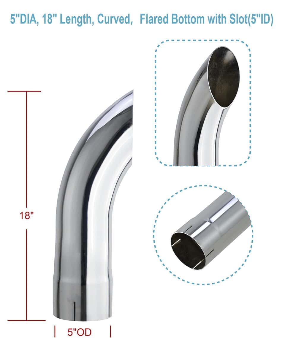 Tubo de escape cromado 5″DIA, 18″ de longitud curvado faldón con ranura