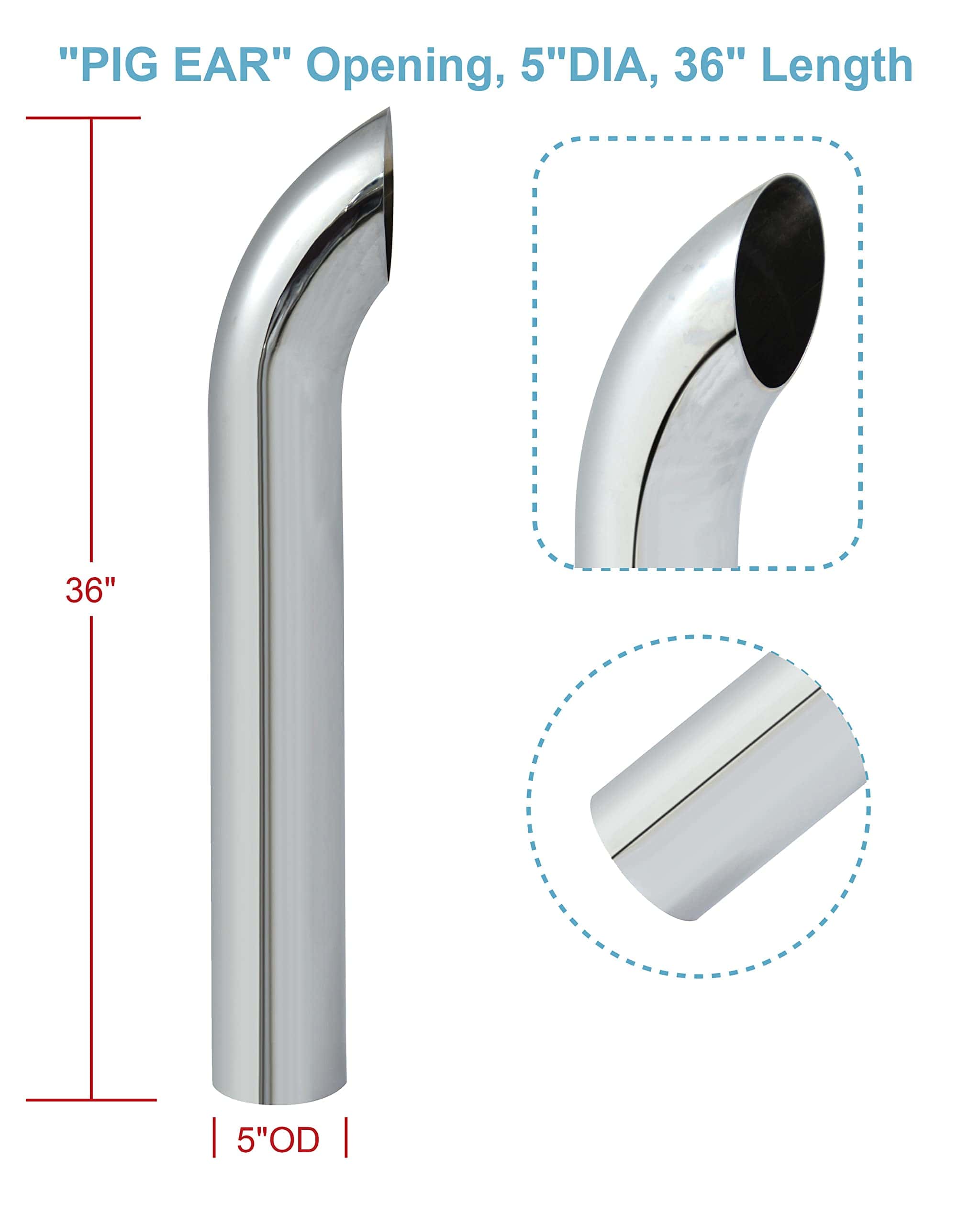Tubo de escape cromado curvado de 5″ x 36″ de longitud