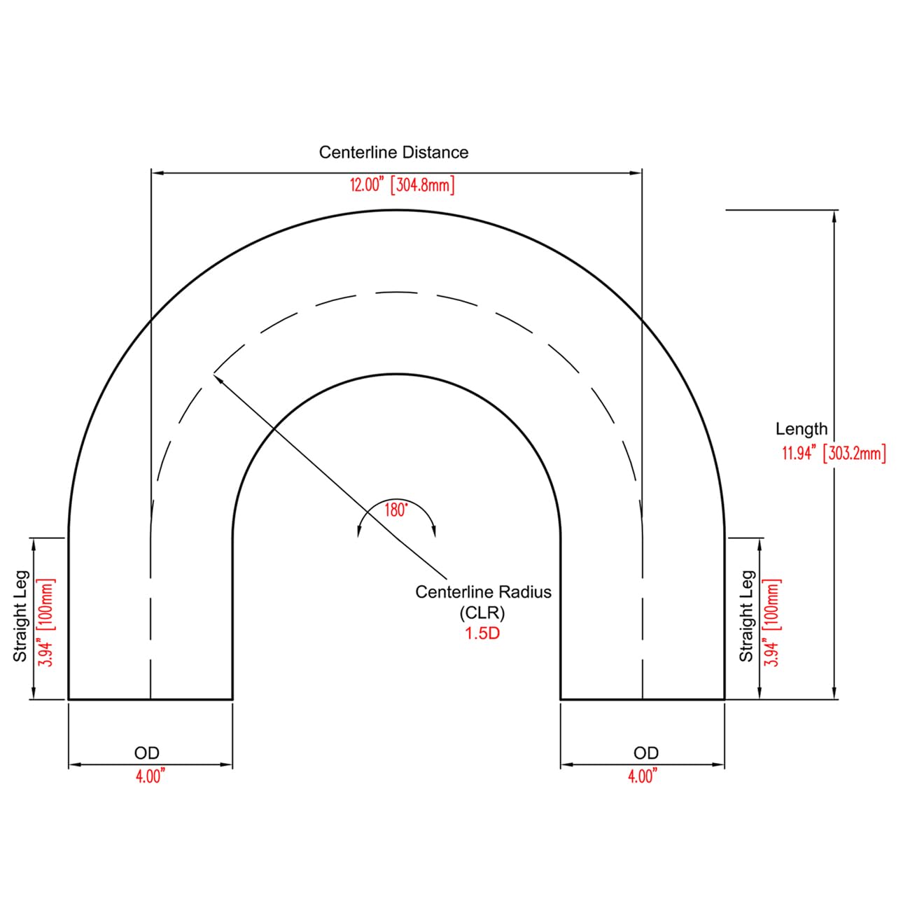 Especificaciones: Material: Aleación de aluminio T6061 Diámetro exterior: 4 Pulgadas (102mm) Grado de curva: 180 grados Longitud de la pierna recta: 3.94″ (100mm) Espesor de pared: 0.079 pulgadas / 2mm Radio del centro: 1.5D / 6 pulgadas Características: – Fabricado con aleación de aluminio T6061 de alta calidad para una resistencia superior, durabilidad y fácil soldadura – Perfecto para sistemas de admisión de aire personalizados, tuberías de intercooler turbo y cualquier trabajo personalizado relacionado con el flujo de aire – La curva mandril suave crea un flujo de aire óptimo; El acabado cepillado proporciona un aspecto único y atractivo – La construcción ligera del tubo también significa menos tensión en su motor, lo que se traduce en un mejor rendimiento general y eficiencia de combustible Paquete Incluye: 1 Tubo de aluminio de 4″ en curva de 180 grados