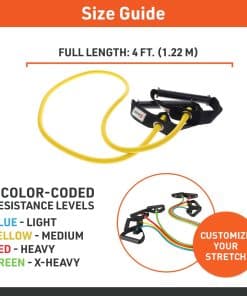 Los Tubos de Resistencia de la Serie Studio de Body Sport te permiten personalizar tu entrenamiento. Disponibles en Resistencia Ligera (azul), Media (amarilla), Pesada (roja) o Resistencia Extra Pesada (verde), estos tubos están coordinados por colores para facilitar su identificación y te permiten elegir cuánta resistencia necesitas. Los tubos están disponibles con mangos duros o mangos acolchados y están hechos con látex. Los Tubos de la Serie Studio están disponibles en embalaje a granel, lo que los hace ideales para estudios de fitness. ¡Comienza a fortalecer tu entrenamiento de resistencia hoy! Los tubos de resistencia, también conocidos como bandas de ejercicio, tubos de fitness y cuerdas de resistencia, son una excelente manera de agregar variedad a tu rutina de entrenamiento de fuerza. Nuestros tubos de resistencia están hechos de materiales de alta calidad y avanzados para garantizar una vida útil máxima. Cada juego de bandas de resistencia viene con mangos cómodos. Los tubos de resistencia son una excelente alternativa a las pesas libres, las máquinas de entrenamiento y los ejercicios tradicionales de peso corporal. Atletas, entrenadores, coaches y entusiastas del fitness utilizan nuestros tubos de resistencia para ayudar con ejercicios de rehabilitación, pérdida de grasa y desarrollo muscular.