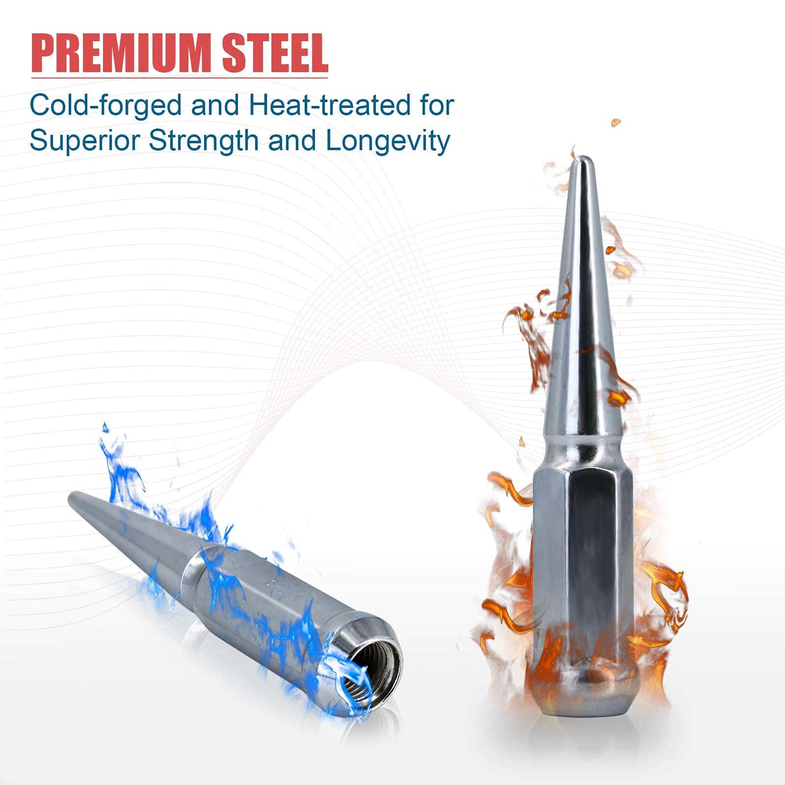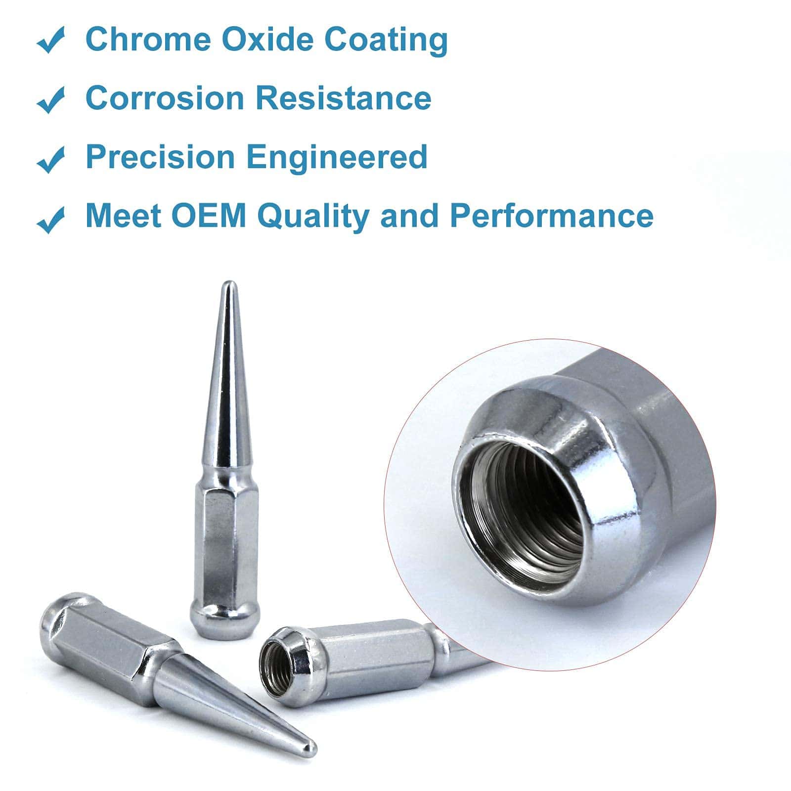 ANTIOXIDANTE Y ANTI-DESENGRASANTE – La superficie de la tuerca puntiaguda tiene pintura electroforética, que no solo hace que la tuerca sea resistente al oxígeno y a la corrosión, sino que también le da a la tuerca un impacto visual brillante.