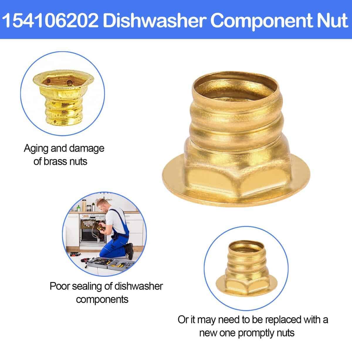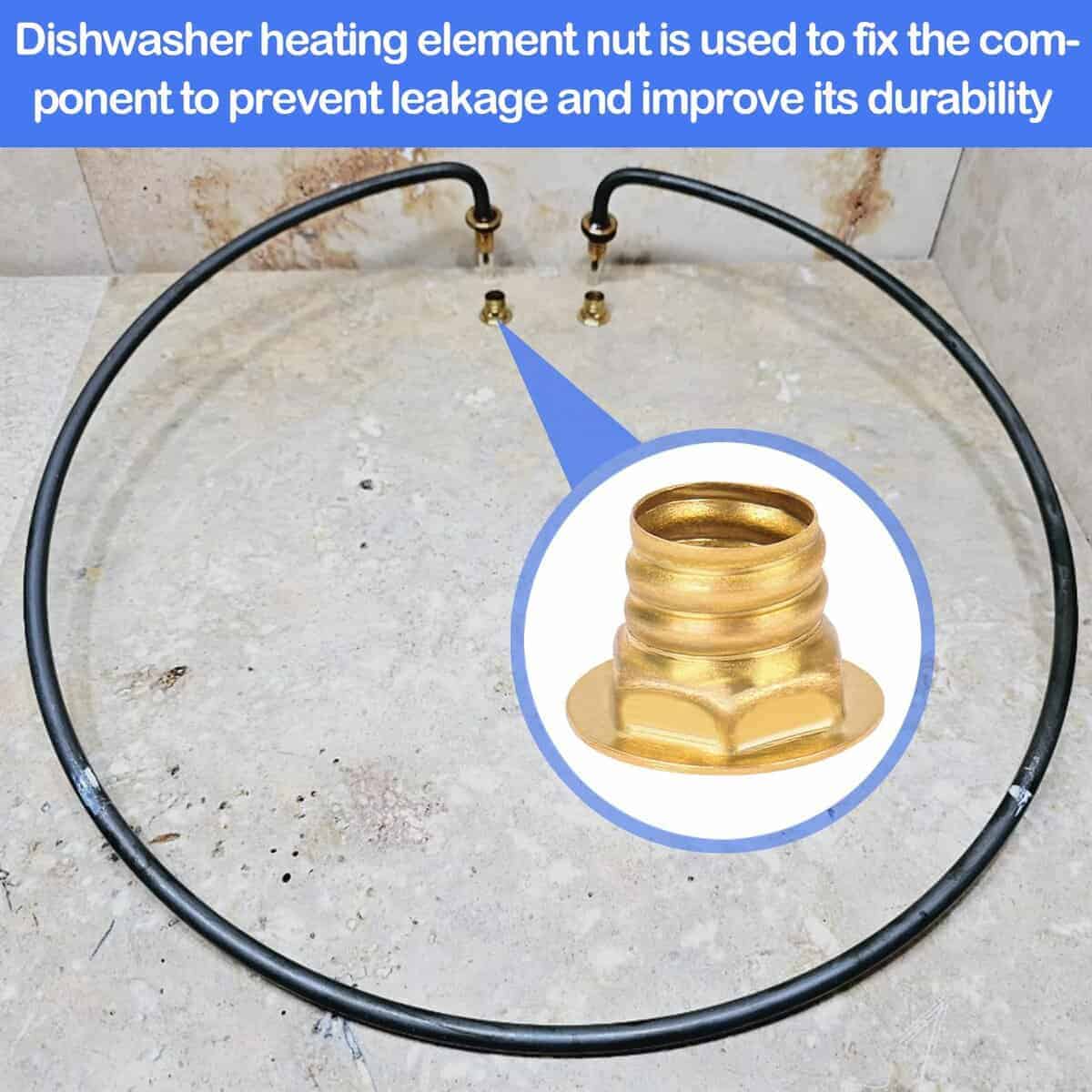 2. Tuerca de latón para lavavajillas. La tuerca de elemento calefactor es adecuada para la mayoría de las marcas de lavavajillas como Electrolux, Frigidaire, Gibson, Kelvin y Westinghouse, proporcionando una excelente eficiencia de trabajo para los lavavajillas.