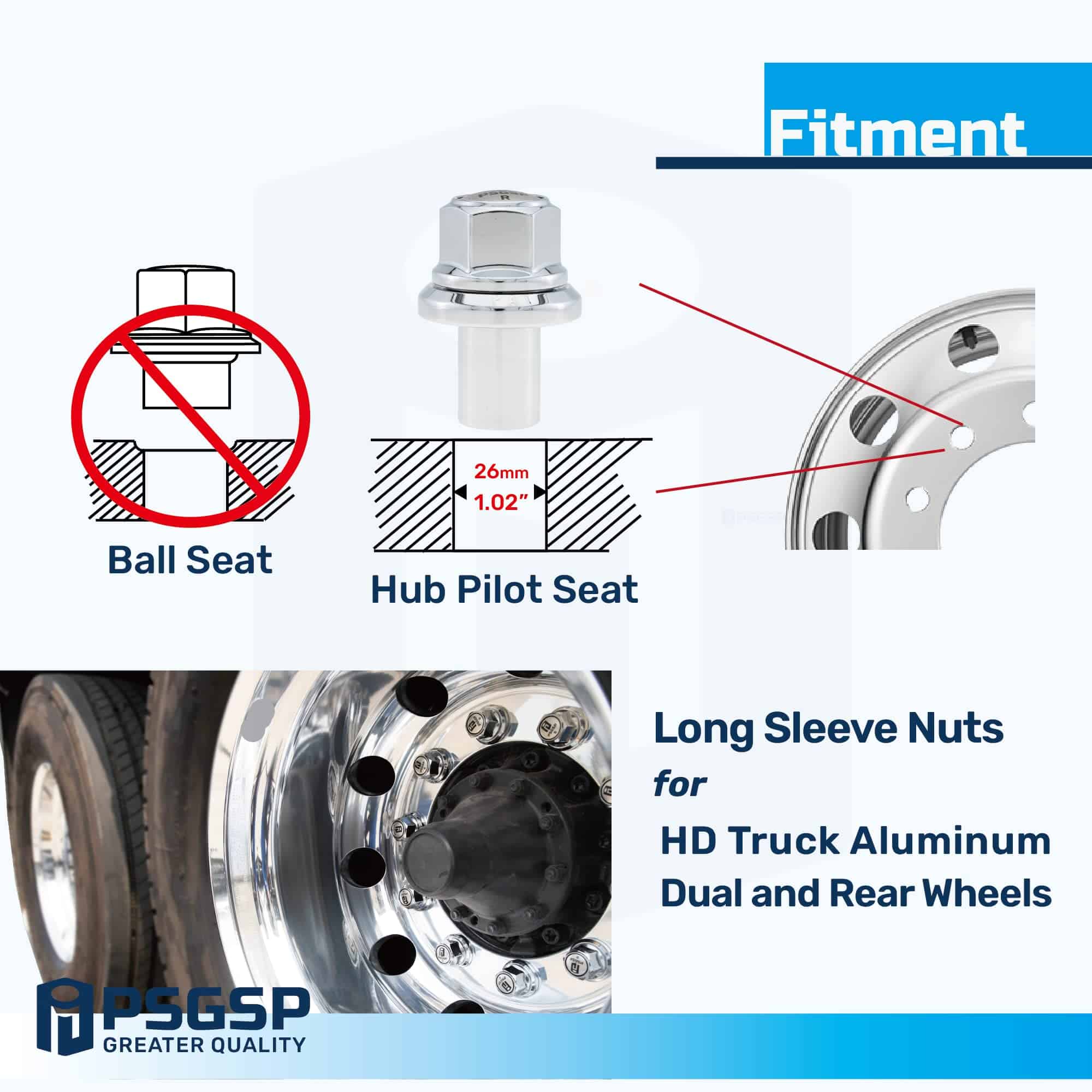 4. Diseño: El diseño de arandela de brida de dos piezas y manguito hace que las tuercas de rueda Prime Sleeve fijen las ruedas de manera más segura y prolonguen la vida de las ruedas.