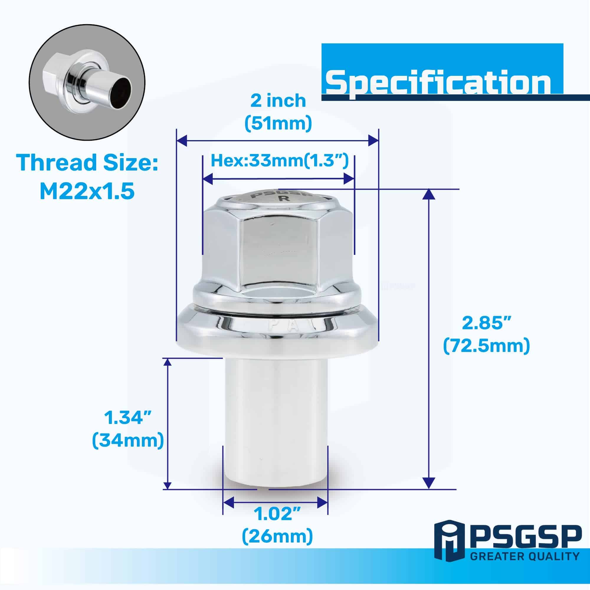 Tuercas de rueda Prime Sleeve PSGSP M22x1.5 Cromadas para
