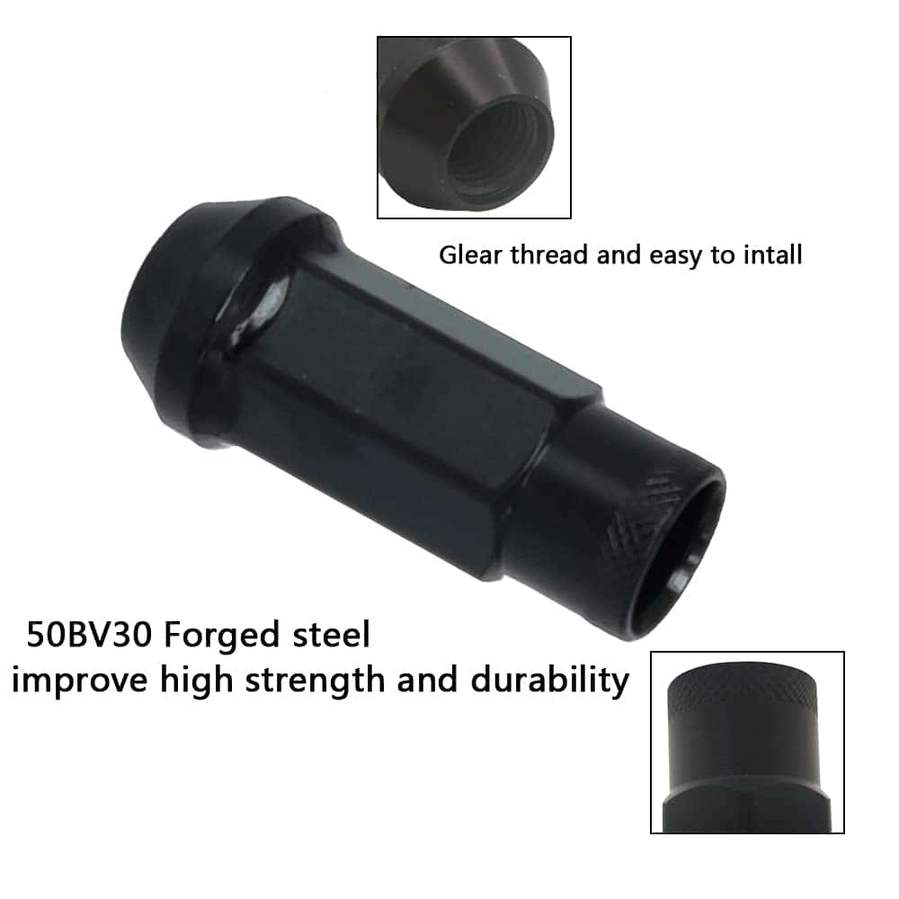 3. Longitud y material: La altura de la tuerca del cubo es de 1.89″ (48 mm). Acero forjado 50BV30, color anodizado para mejorar resistencia y durabilidad.