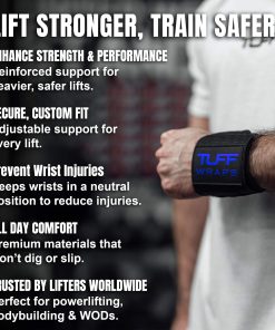 TuffWraps 16″ Muñequeras para Gimnasio – Sin -Negro/Azul