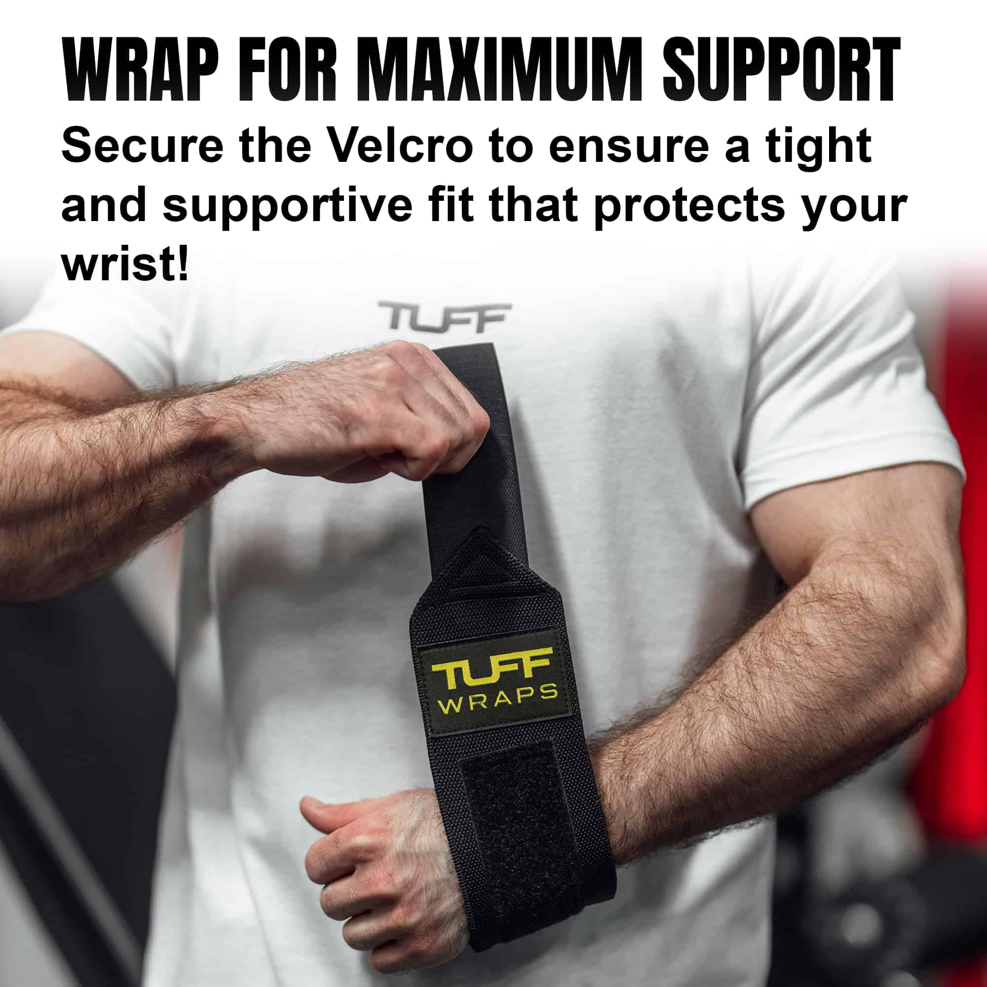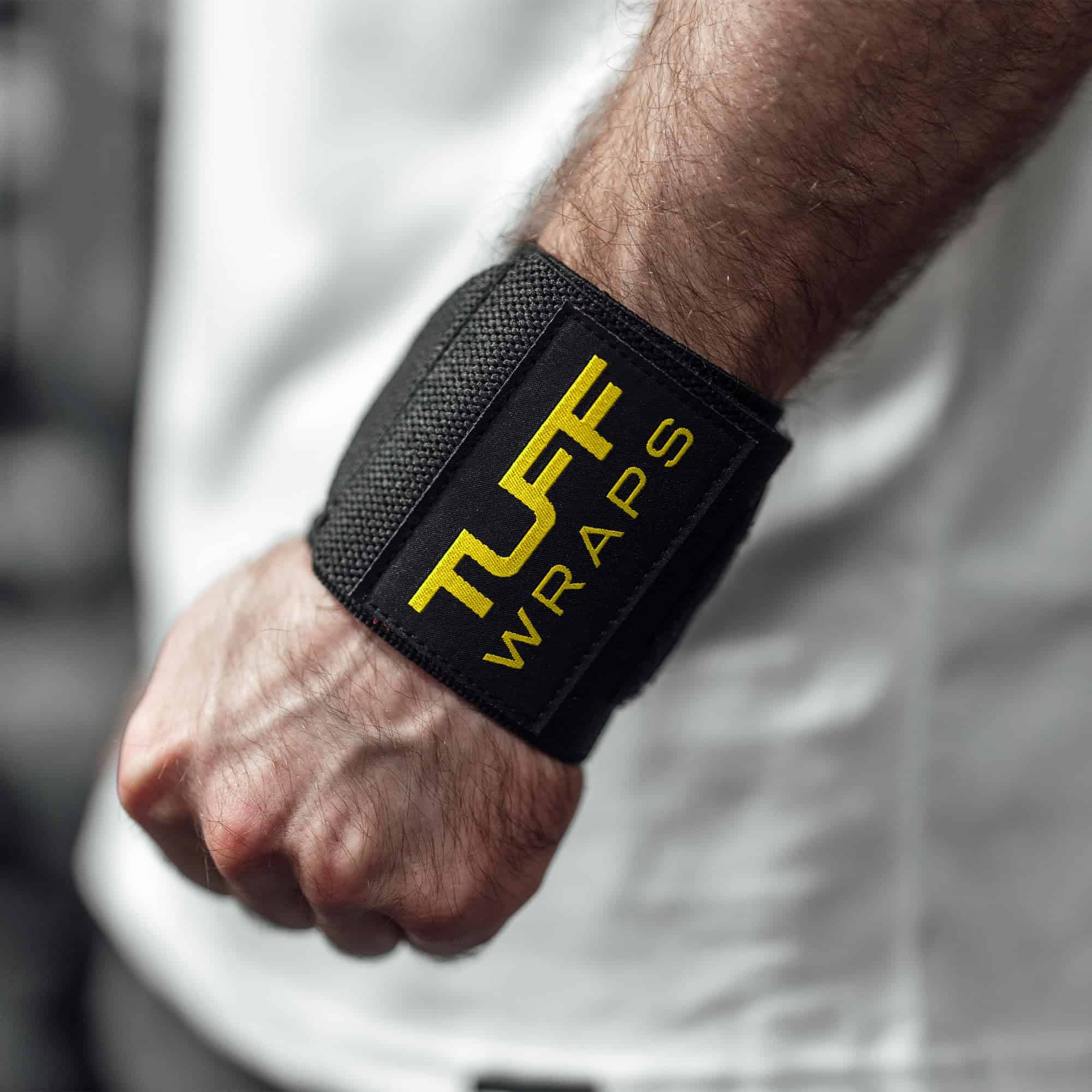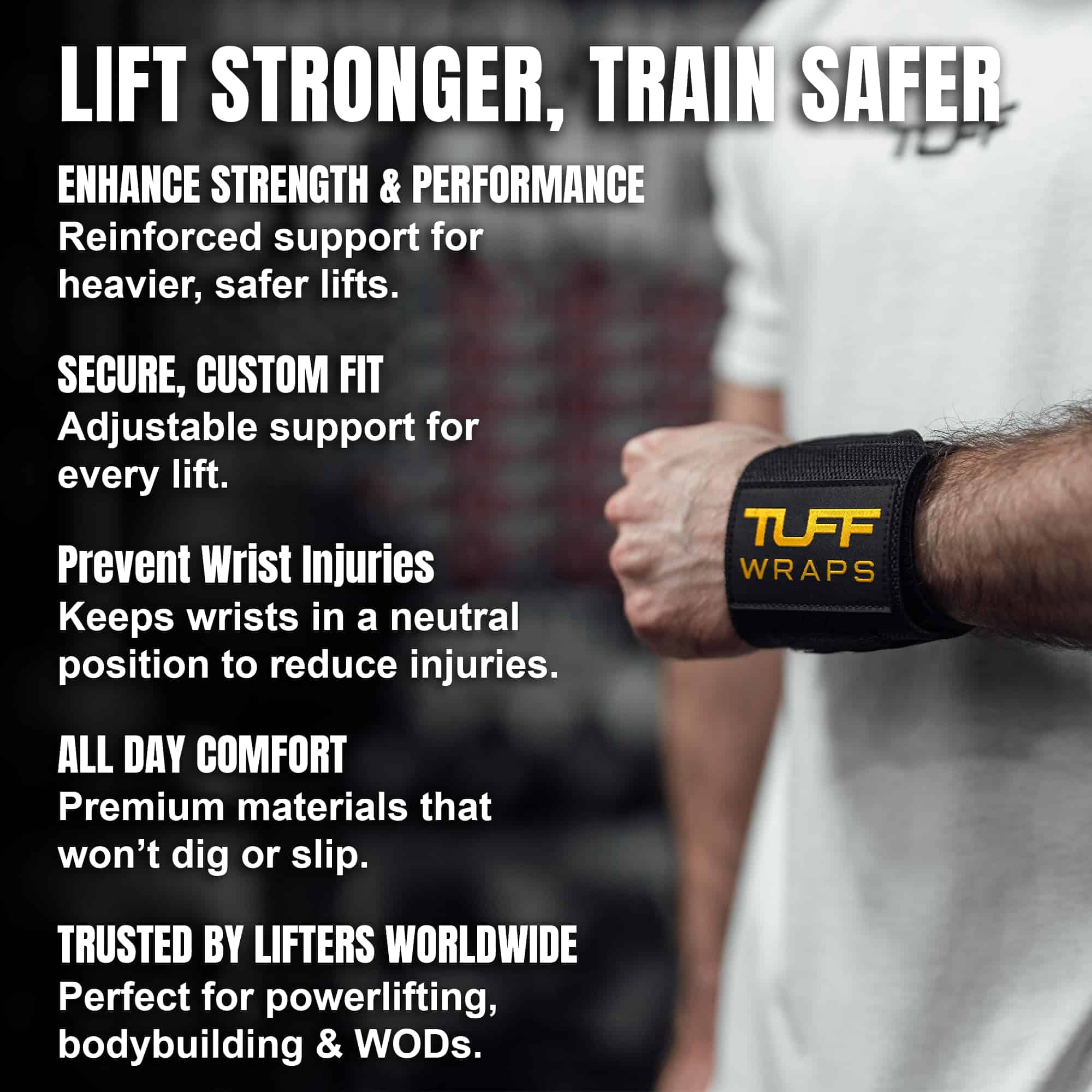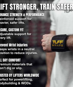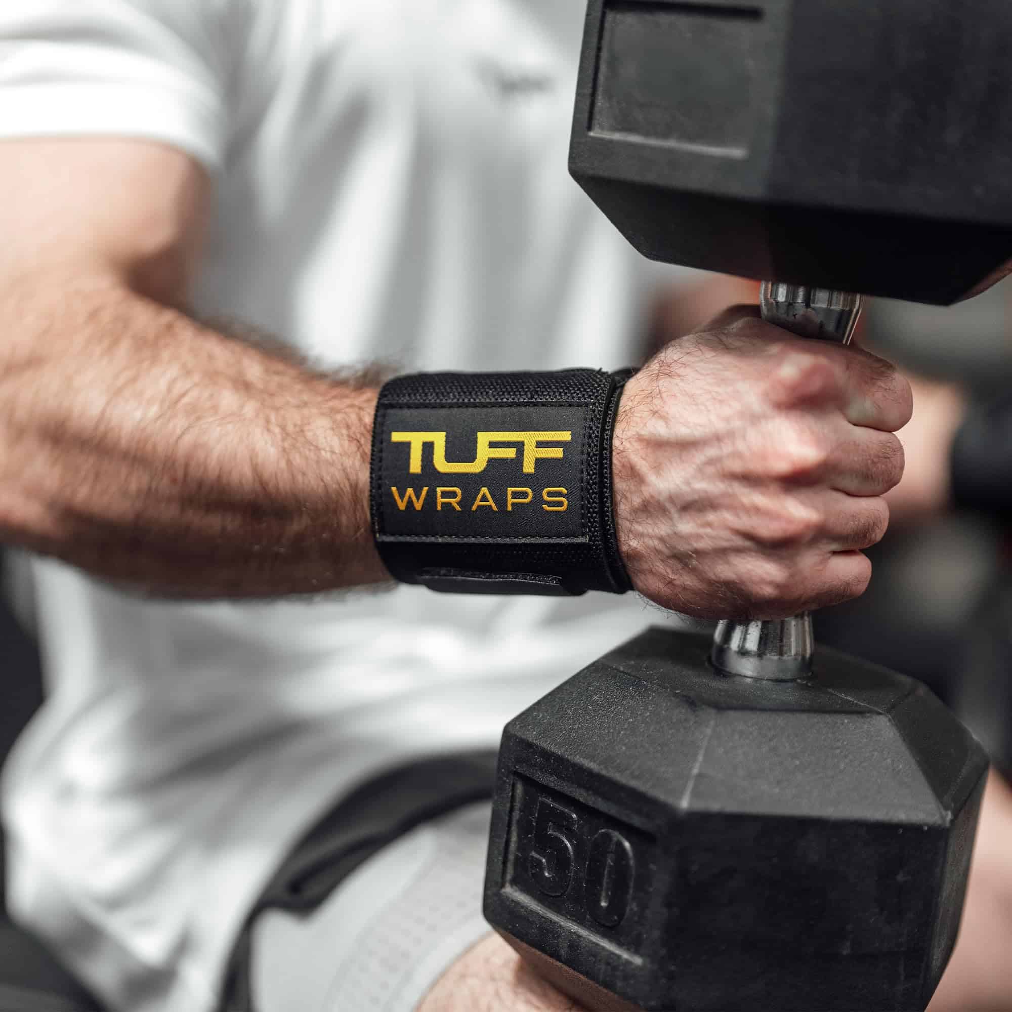 TuffWraps 16″ Muñequeras para Gimnasio – Sin -Negro/Oro