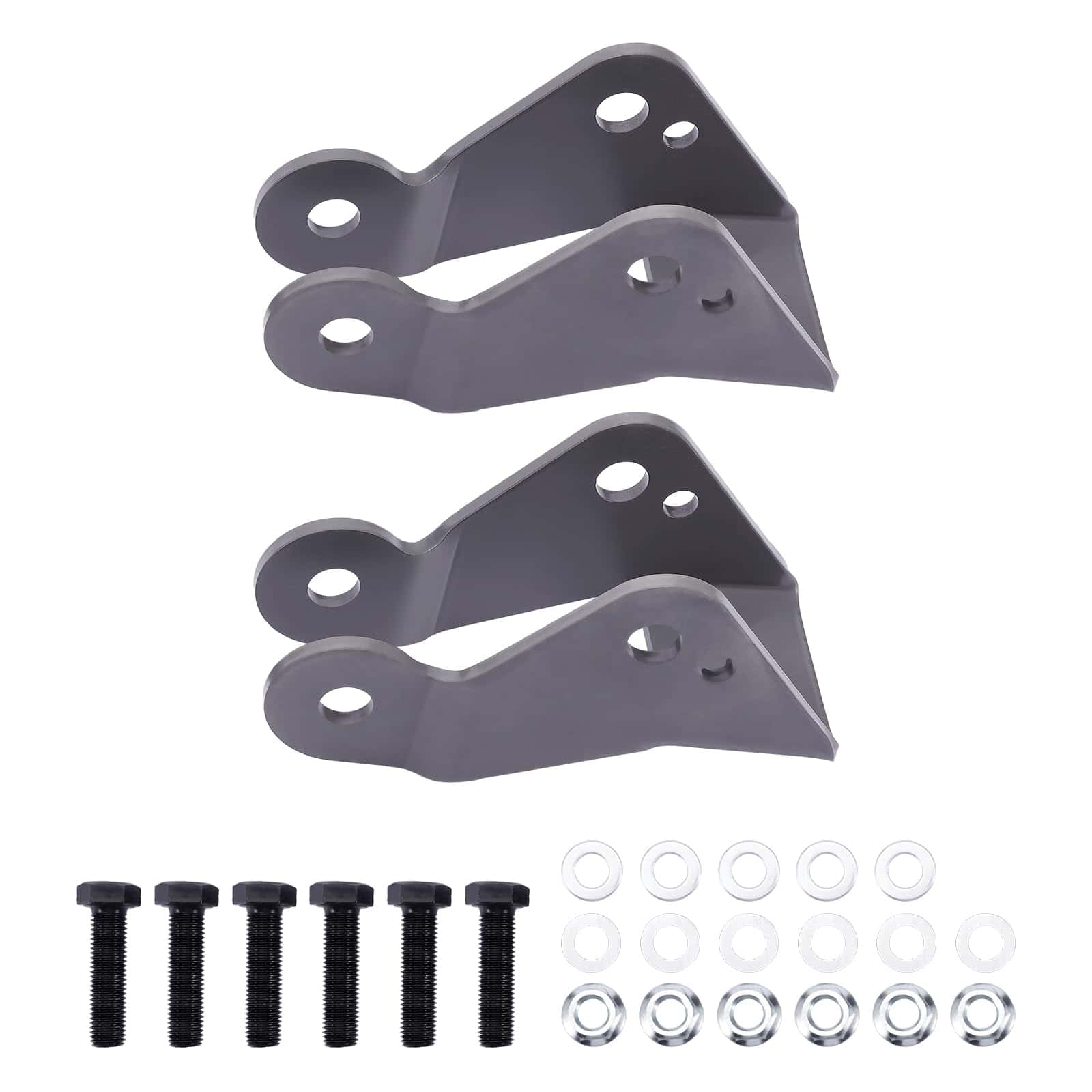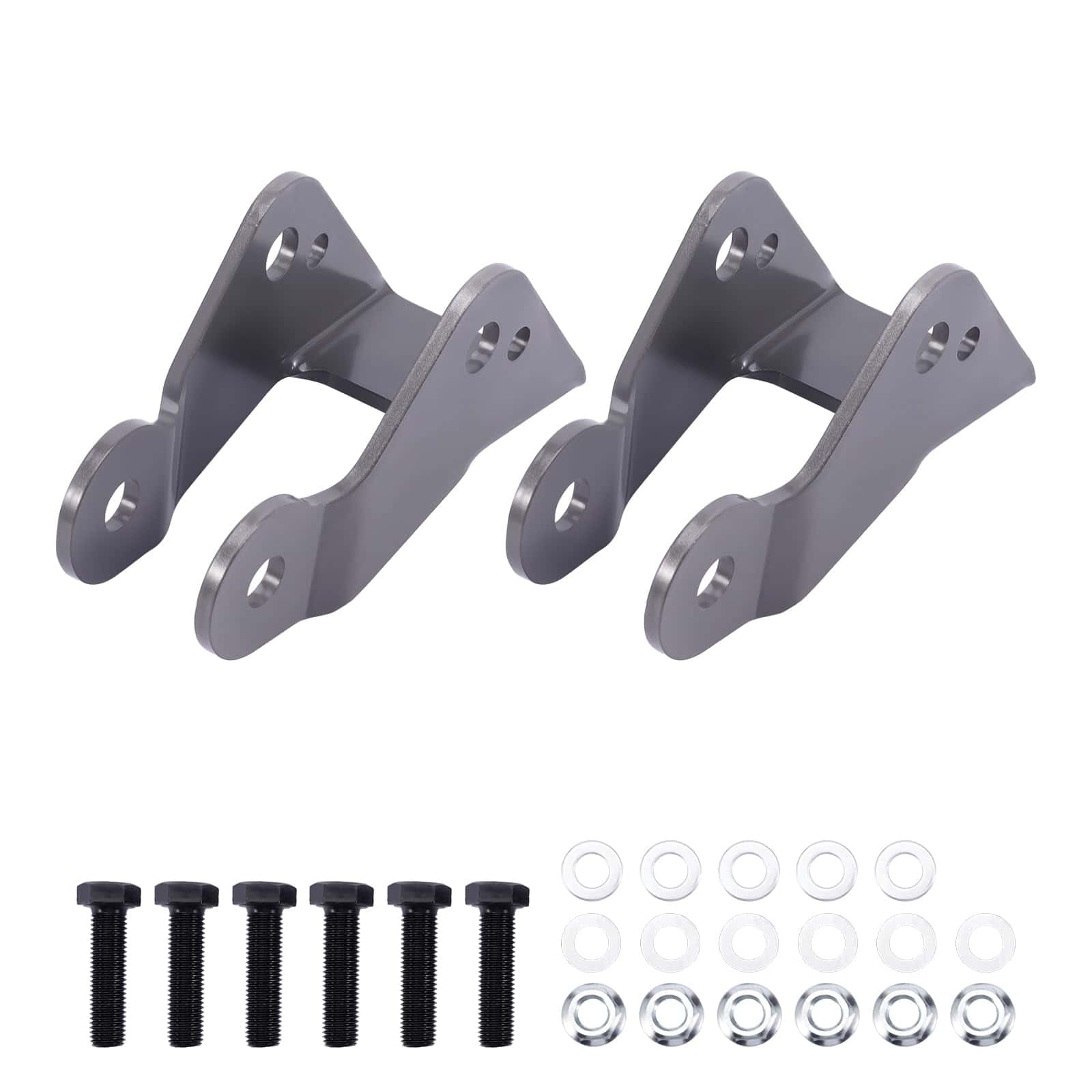 4. ALTA CALIDAD Y DURADERO – Los extensores de amortiguadores bajados están fabricados en acero al carbono cortado con láser, han sido recubiertos con pintura en polvo y han sido sometidos a pruebas exhaustivas para garantizar un ajuste directo y una larga vida útil. Viene con 2 soportes extensores de amortiguadores, 6 pernos (M12x1.5×45).