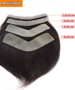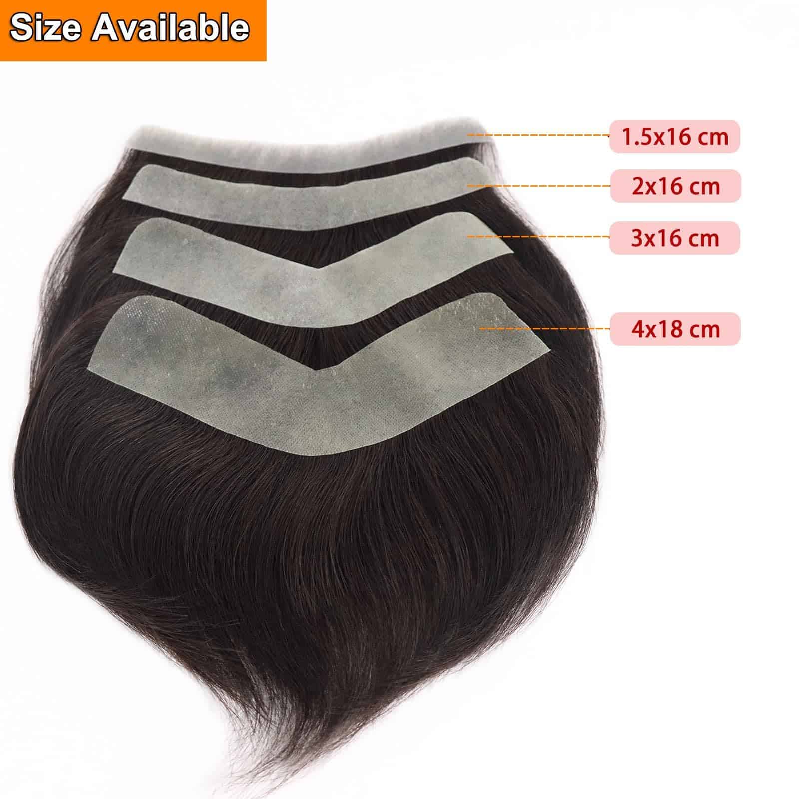 3. Tamaño de la base: tenemos 4 tamaños para que elijas: 1.5x16cm, 2x16cm, 3x16cm, 4x18cm prótesis capilar para sistema de hombres, que se adapta a casi todas las necesidades de los clientes para el tamaño del tupé, ligero.