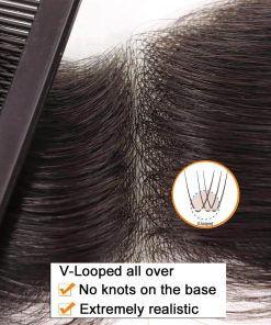 2. Material de la base: tupé frontal de piel completa para hombres, con nudo V loop, como si el cabello creciera de tu propio cuero cabelludo, se ve realista y natural, fácil de pegar y limpiar.