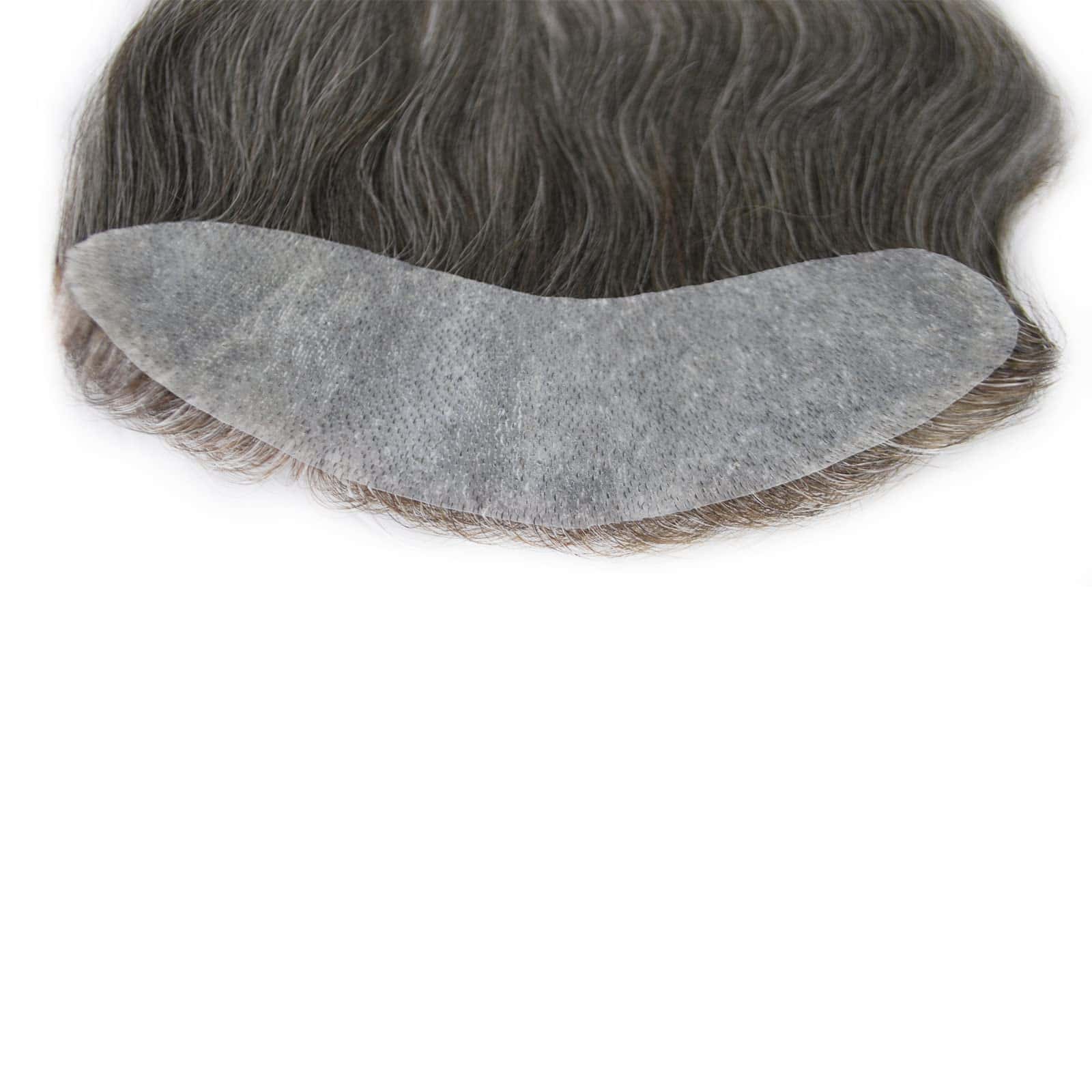 Tupé en forma de V para la línea delantera del cabello de hombres, 330, color café ceniza con 30% gris. Todo el cuero cabelludo con nudos en forma de bucle, sin nudos visibles, como si el cabello creciera desde el cuero cabelludo. Base de piel fina, fácil de poner y quitar con pegamento y removedor de pegamento. Adecuado para la pérdida de cabello o cabello delgado en el área de la frente. Tamaño de la base es de 7 pulgadas por 1.75 pulgadas, se puede cortar si no es adecuado para tu área de tupé. También adecuado para reemplazar la línea del cabello del tupé si la parte delantera del tupé está rota y la otra parte todavía está funcional. Longitud del cabello: 6 pulgadas, densidad ligera-media para crear una línea del cabello natural en retroceso.