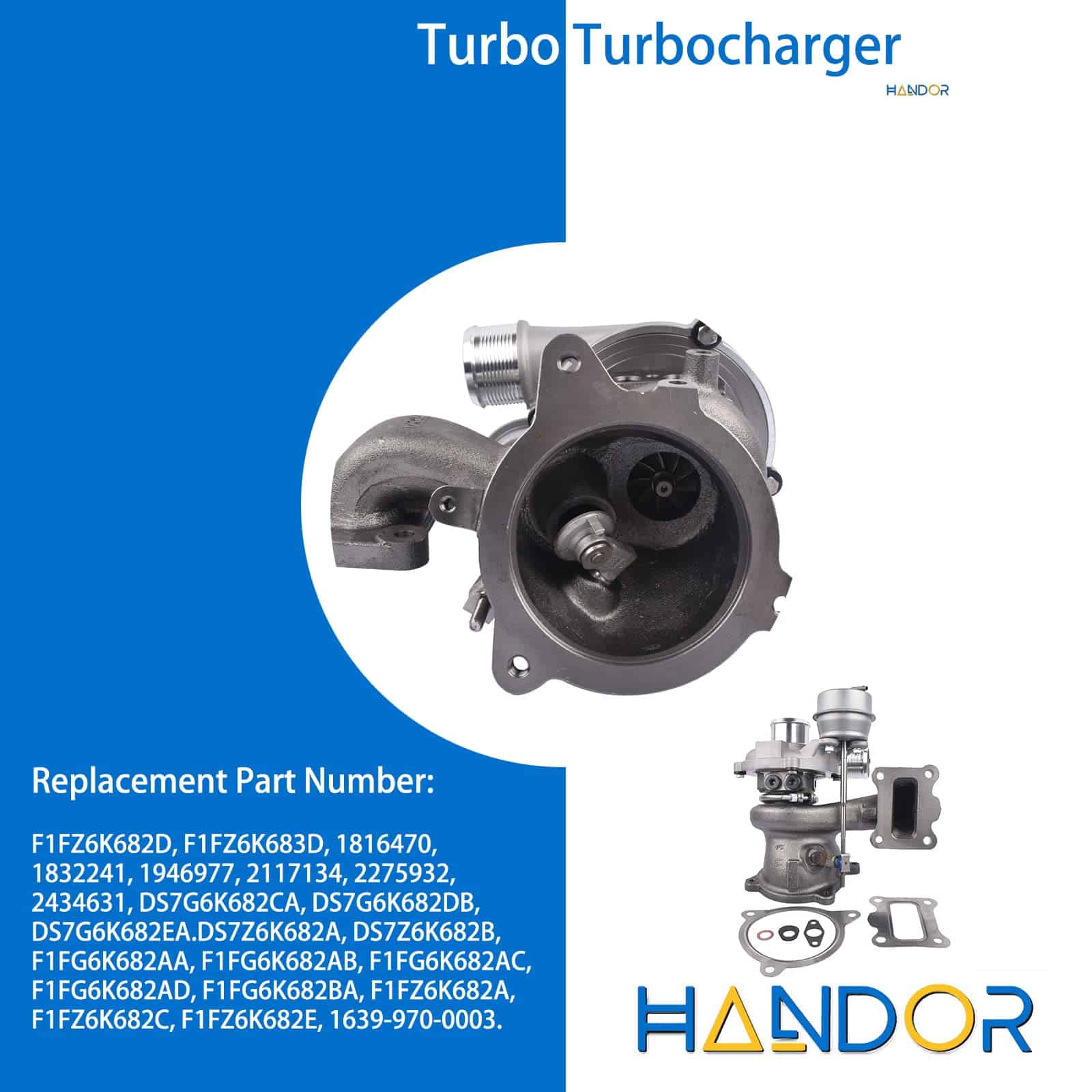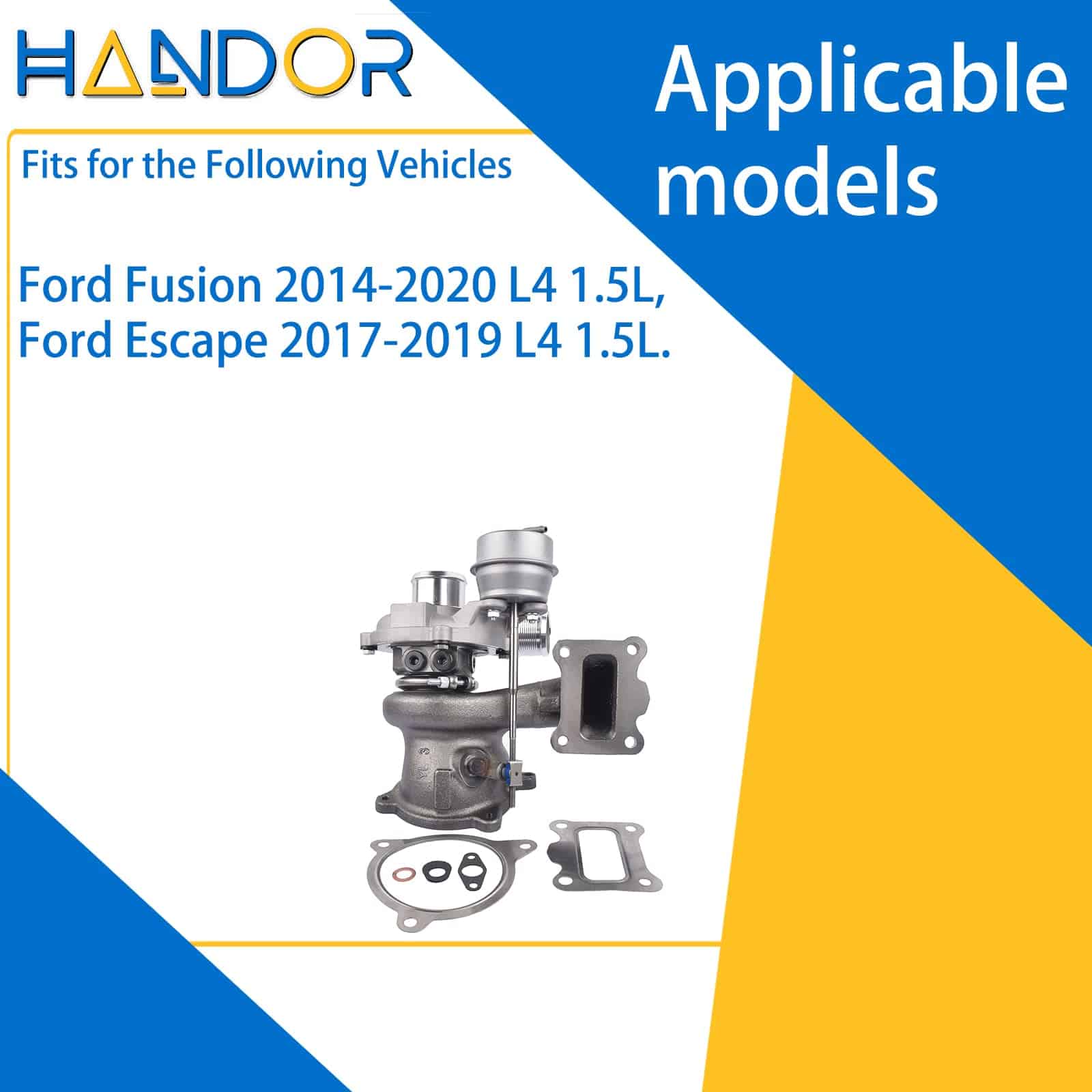 OE part number F1FZ6K682D, F1FZ6K683D, 1816470, 1832241, 1946977, 2117134, 2275932, 2434631, DS7G6K682CA, DS7G6K682DB, DS7G6K682EA. OE part number DS7Z6K682A, DS7Z6K682B, F1FG6K682AA, F1FG6K682AB, F1FG6K682AC, F1FG6K682AD, F1FG6K682BA, F1FZ6K682A, F1FZ6K682C, F1FZ6K682E, 1639-970-0003. Fits for Fusion 2014-2020 L4 1.5L, Escape 2017-2019 L4 1.5L. Handor se especializa en piezas de automóviles. Nuestros productos pasan por rigurosas pruebas para garantizar su durabilidad y confiabilidad, y nos enorgullece brindar un servicio al cliente excepcional. Además de nuestro compromiso con la calidad, ofrecemos precios competitivos y una amplia gama de productos para satisfacer las necesidades de nuestros clientes. Cuando se trata de piezas de automóviles, Handor es la marca en la que puedes confiar.