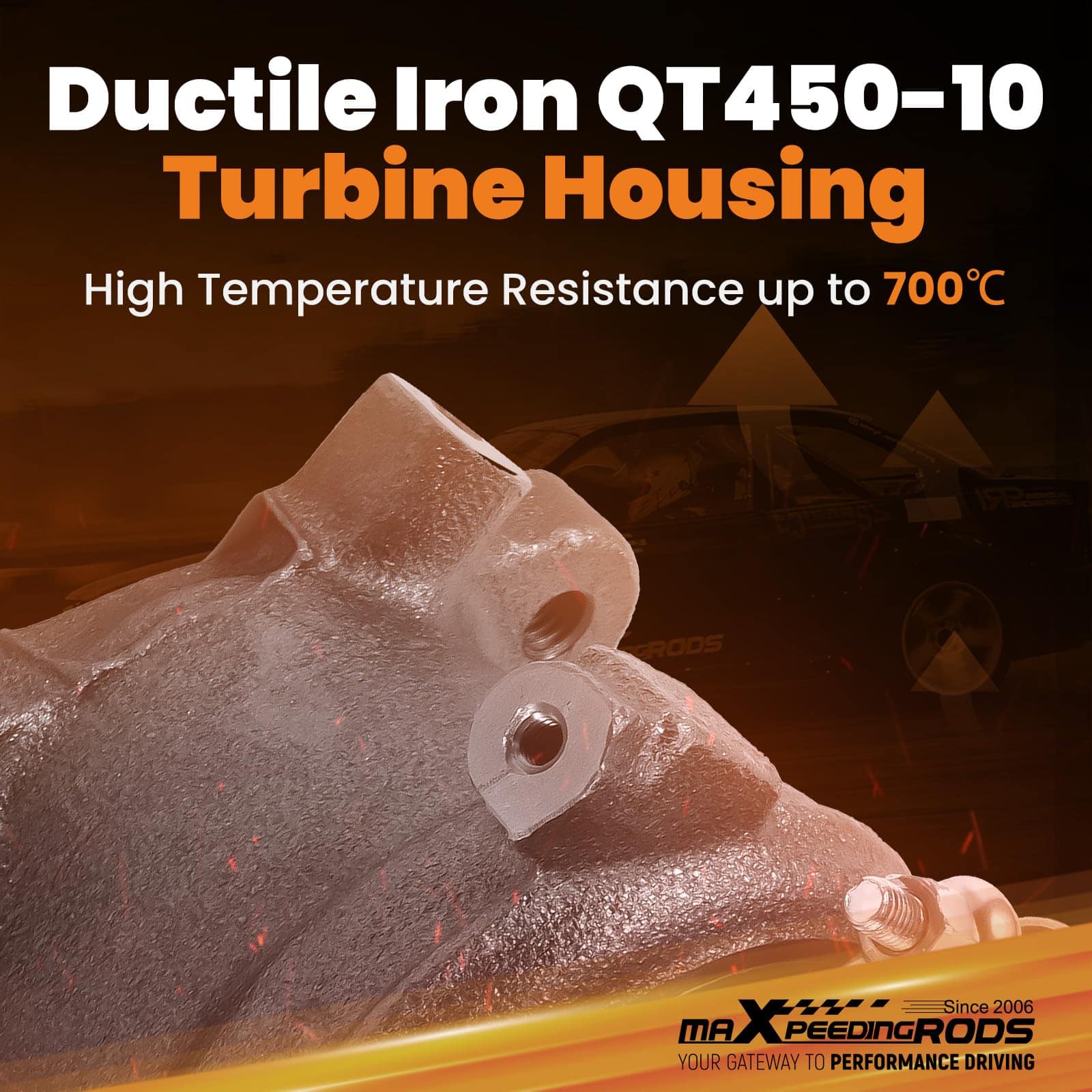 4. Carcasa y Rueda de Turbina La carcasa de la turbina hecha de hierro dúctil es resistente a altas temperaturas de 1292 F. Y la rueda de aleación de la turbina tiene una alta estabilidad de oxidación y puede funcionar bien a 1652 F.