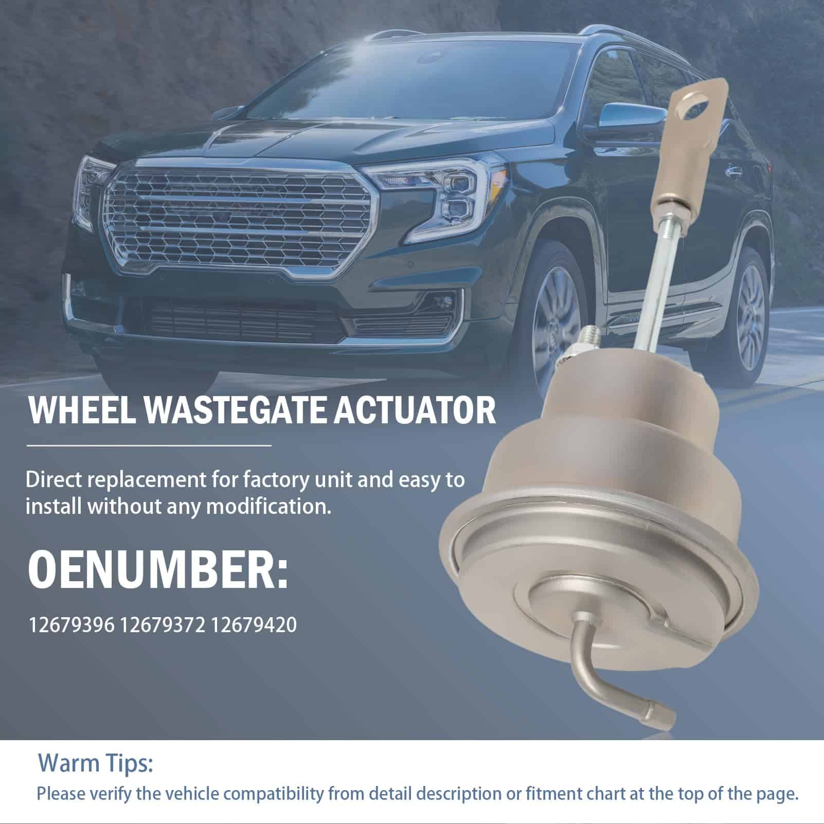 1. Compatible con Equinox 2018-2022 Encore 2016-2019 Terrain 2018-2022. 2. Número de Parte 12679396 12679372 12679420. 3. Incluido en el Paquete 1 x Actuador de Wastegate del Turbo. 4. Producción de Precisión con Materiales de Calidad, resistente y duradero, prolonga el tiempo de uso. 5. Periodo de garantía de 1 año. Por favor, verifique cuidadosamente el año/marca/modelo del producto que necesita, número OE, revisa detenidamente nuestra descripción, asegúrate de que cumple antes de comprar.