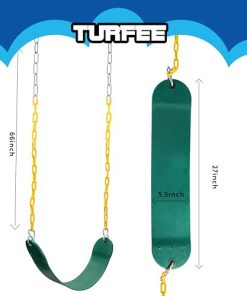 TURFEE 3 Pack Green Swing Seat Heavy Duty 66″ Chain Snap Hooks for Kids Outdoor Play & Swing Sets