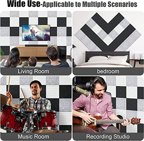 Estos paneles de absorción de sonido actualizados presentan un diseño único que combina patrones de ladrillos y cuadrados, que se pueden cortar fácilmente en el tamaño y forma que desees. Con múltiples opciones de color y métodos de empalme para satisfacer tus diversas ideas de paredes DIY, esto no afectará el rendimiento y efecto del panel para absorber ruido y eliminar eco, también desempeña un papel en decorar y proteger la pared. Además, con su diseño autoadhesivo, este panel a prueba de sonido tiene un fuerte pegamento en la parte posterior, sin necesidad de otras herramientas o materiales, solo necesita determinar la ubicación, rasgar y pegar una pieza en 10 segundos, lo que reduce el costo de instalación y facilita la operación. Nuestros paneles de aislamiento acústico pueden adaptarse a diferentes superficies y pueden instalarse en paredes, techos y puertas para absorber el eco, ruido y reverberación de las áreas circundantes. Cuando necesites reducir tu propio ruido o mejorar la claridad del sonido, nuestros paneles insonorizantes son lo que estás buscando. Después de instalar los paneles de absorción de sonido en las paredes o techos, pueden reducir y absorber ecos no deseados, reverberaciones, ondas estacionarias y ecos de temblor, mejorar el efecto acústico de la habitación y mejorar la calidad del audio, ideal para tratar el sonido en las paredes de tu estudio u oficina. Ampliamente utilizado en el procesamiento acústico y decoración, este panel acústico con patrón de ladrillo es la solución perfecta para tu decoración interior ideal y tratamiento acústico. Es adecuado para trabajos de tratamiento acústico como absorción de sonido, reducción de ruido y mejora de la calidad del sonido. Ideal para estudios, salas de cine en casa, dormitorios, salas de juegos y otros lugares. Cuanto mayor sea el área de cobertura de los paneles acústicos, más obvio será el efecto de reducción de ruido.