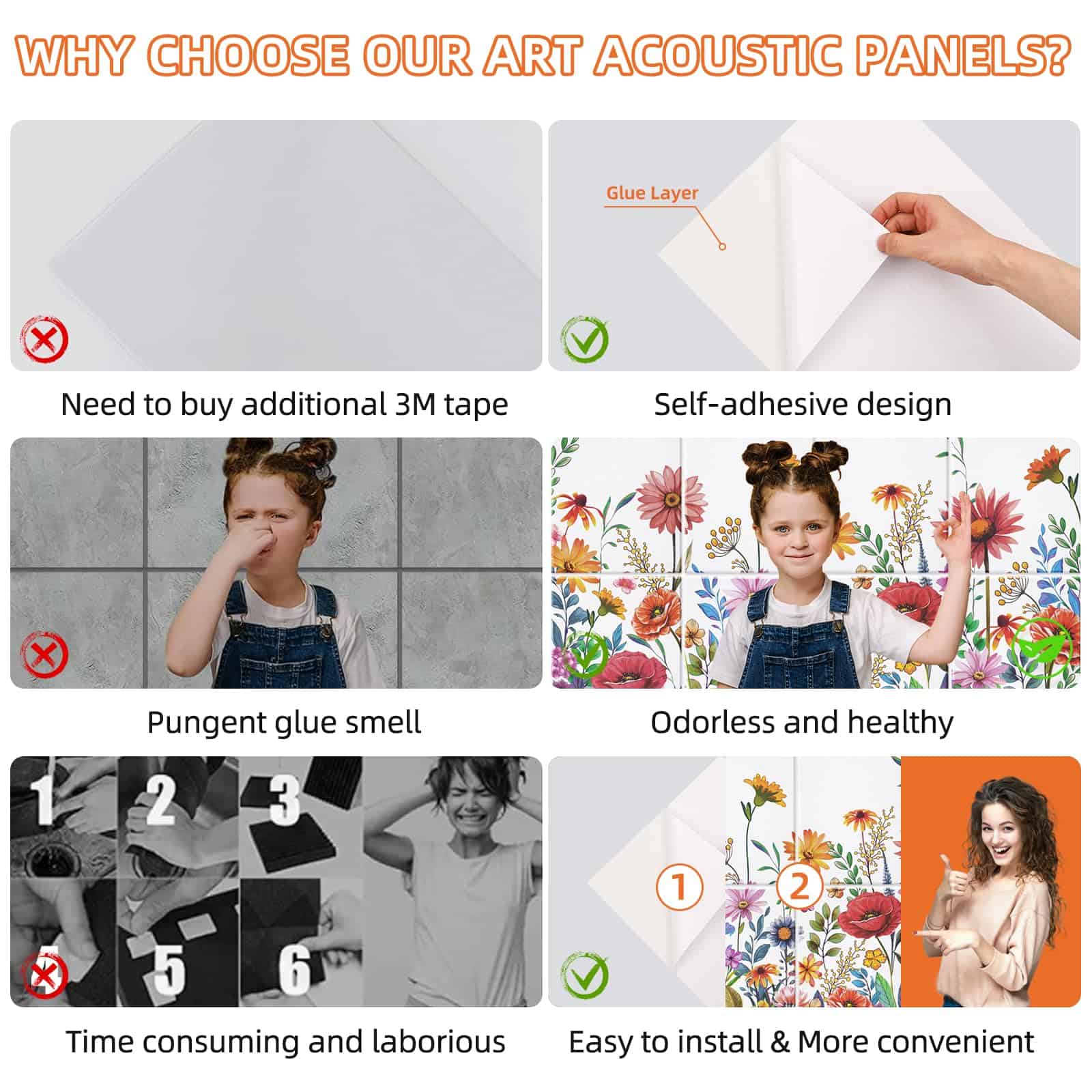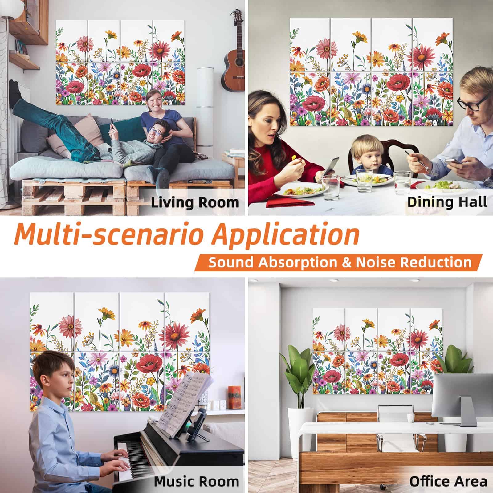 Tutmyrea 8 Pack Paneles Acústicos de Arte, -Flores Coloridas