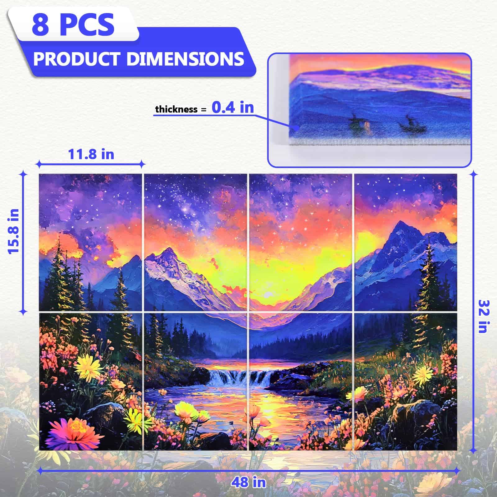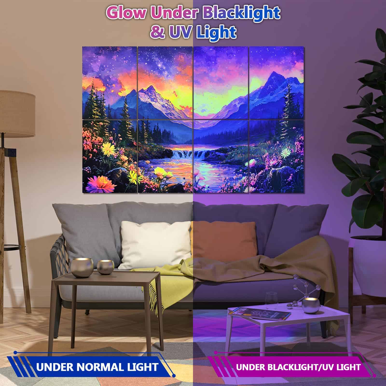 Tutmyrea 8 Pack Paneles Acústicos de Luz Negra, 48″X32″