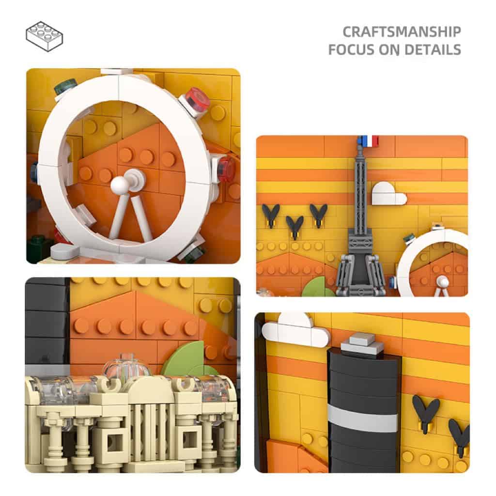 Este conjunto de bloques para construir una maqueta de la línea de horizonte de París es una interpretación detallada y altamente detallada de la línea de horizonte de París, presentando famosos puntos de referencia como la Torre Eiffel, el Grand Palais y el Edificio Monapace, además de áreas de plantas y árboles. La maqueta está diseñada para brindarte fantásticos recuerdos de París. La pintura tridimensional viene con ganchos para colgar y ofrece dos estilos decorativos: se puede utilizar como decoración de pared o ensamblar con patas de apoyo según las instrucciones para colocarlo en mesas. La obra de arte en 3D es una pieza llamativa y es una excelente decoración para el hogar u oficina. Diseñado para adultos y niños mayores de 6 años, este set de bloques es fácil y divertido de construir. El folleto acompañante describe el diseño, estilo arquitectónico e historia de cada edificio para agregar a tu experiencia de construcción. Cada modelo de la línea de horizonte está escalado para representar con precisión el tamaño comparativo de las estructuras destacadas, con una representación realista del color y atención al detalle. Este es un regalo perfecto para tus amigos o niños, ideal para amigos manuales para construir su propia ciudad de Sídney. Deja que tu amigo o hijo sienta tu gran amor en las vacaciones o cumpleaños.