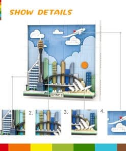 Este conjunto de arte de pared de tarjeta postal de Sydney es una interpretación detallada de la arquitectura del skyline de Sydney, con famosos puntos de referencia como la Ópera de Sydney, el Puente de la Bahía de Sydney, la Torre de Sydney, que te traerá recuerdos fantásticos de Sydney. La pintura tridimensional viene con ganchos para colgar y ofrece dos estilos decorativos, puede ser utilizado como decoración de pared o ensamblado con patas de apoyo según las instrucciones para colocarlo en mesas, la obra de arte 3D es una pieza llamativa y es una gran decoración para el hogar u oficina. Diseñado para adultos y niños de 6 años en adelante, este set de bloques es fácil y divertido de construir. El folleto que lo acompaña describe el diseño, el estilo arquitectónico y la historia de cada edificio para agregar a tu experiencia de construcción. Cada modelo de skyline está escalado para representar con precisión el tamaño comparativo de las estructuras destacadas, con representación realista de colores y atención al detalle. ¡Este es un regalo perfecto para tus amigos o niños, ideal para amigos manuales para construir su propia ciudad de Sydney! ¡Deja que tus amigos o niños sientan tu fuerte amor en las vacaciones o cumpleaños.