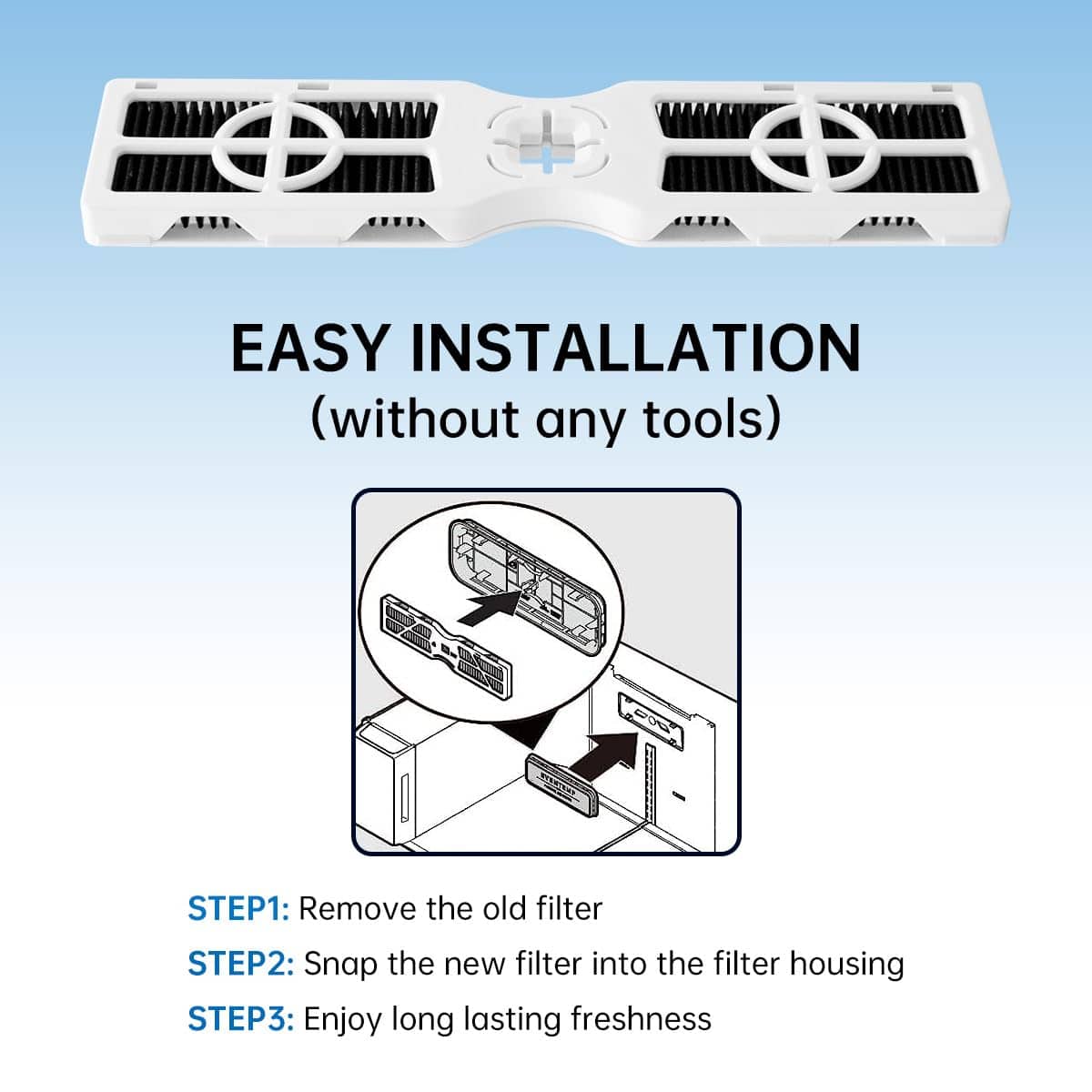 El filtro de aire Tvvcalk FRGPAAF2 PureAir AF-2 es un reemplazo compatible para diferentes modelos de refrigeradores Frigidaire. Elimina los olores desagradables del aire dentro de su refrigerador, manteniendo sus alimentos frescos por más tiempo. Este filtro de aire está diseñado para adaptarse perfectamente a los refrigeradores Frigidaire mencionados, su tamaño compacto de 7.6 x 1.7x 0.5 pulgadas lo hace fácil de instalar y reemplazar. Reemplace el filtro de aire FRGPAAF2 PureAir AF-2 cada 3-6 meses para garantizar un ambiente fresco y libre de olores en su refrigerador. Mantenga su refrigerador limpio y con un olor fresco gracias a este filtro de aire de carbono de alta calidad. ¡Haz que tus alimentos mantengan su frescura y sabor original sin preocuparte por la contaminación cruzada! Contáctenos si tiene algún problema de calidad con nuestro filtro de aire FRGPAAF2 PureAir AF-2, estamos aquí para brindarle el mejor servicio y soluciones.