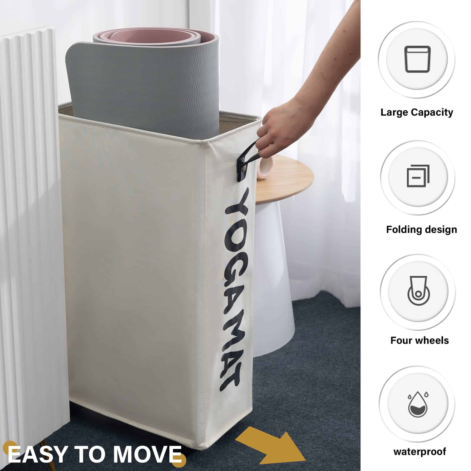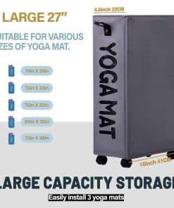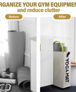 El Twira Yoga Mat Storage Racks es un práctico y versátil organizador de almacenamiento para tu gimnasio en casa. Con un diseño de esquina, este estante se puede instalar fácilmente en la esquina de la habitación, junto a la estantería u otros espacios pequeños, lo que te permite ahorrar espacio en el suelo. Con un tamaño ultra grande de 16″(L)8.6″(W)27.5″(H) /41x22x70CM y una capacidad de 63L, este estante puede acomodar fácilmente tres colchonetas de yoga y una variedad de equipos de yoga y equipo deportivo. La estantería está hecha de tela de alta calidad de alta densidad y está recubierta con material impermeable para garantizar durabilidad y años de uso. También cuenta con cuatro ruedas robustas de 360 grados en la parte inferior, una de ellas con bloqueo, para garantizar un movimiento equilibrado en interiores y exteriores. Este organizador te permite almacenar una variedad de elementos, como colchonetas de yoga, mancuernas, pesas rusas, bloques de yoga, bandas de resistencia, rodillos, rodillos de espuma y más. ¡Hazte con el Twira Yoga Mat Storage Racks y mantén tu equipo de yoga y fitness ordenado y accesible en todo momento!
