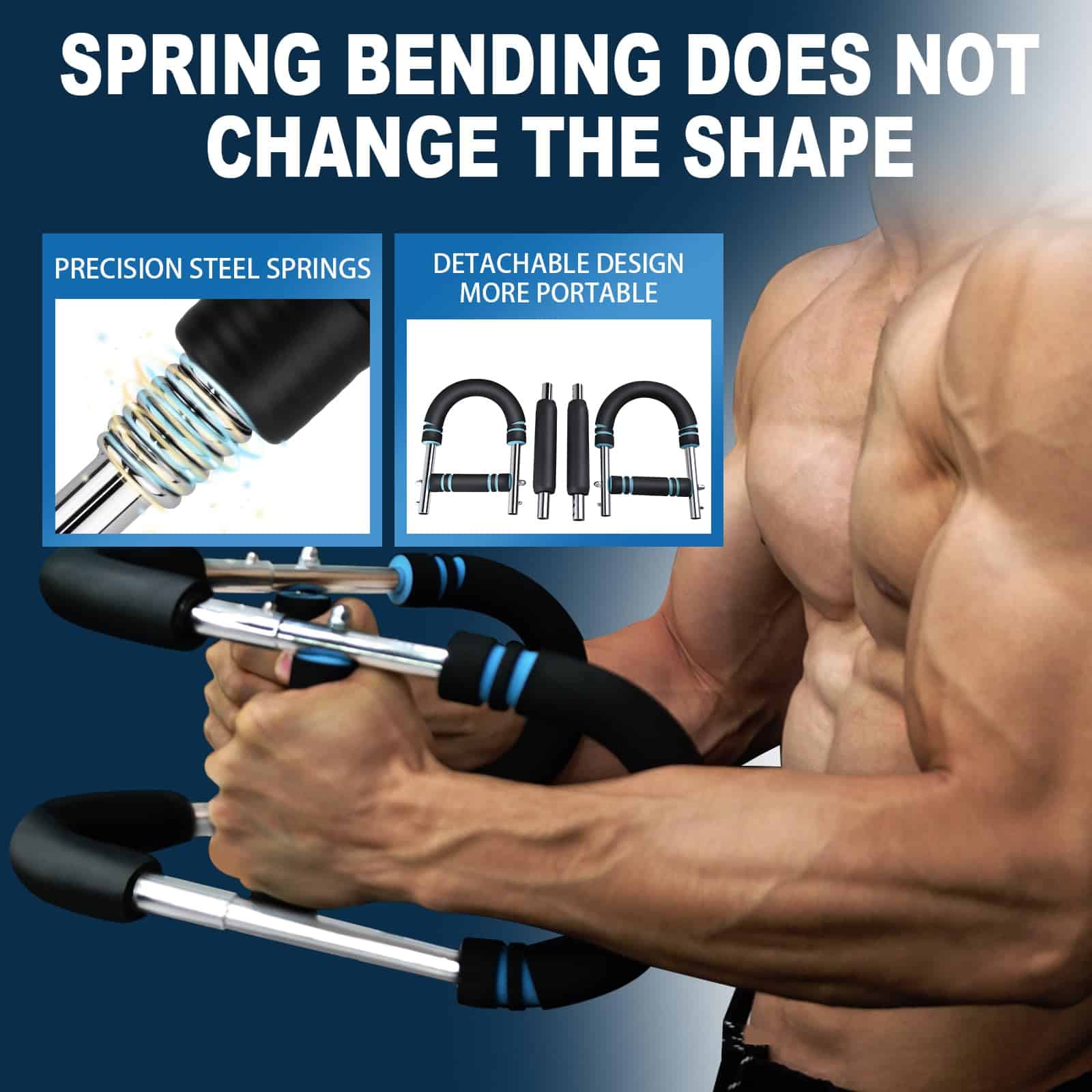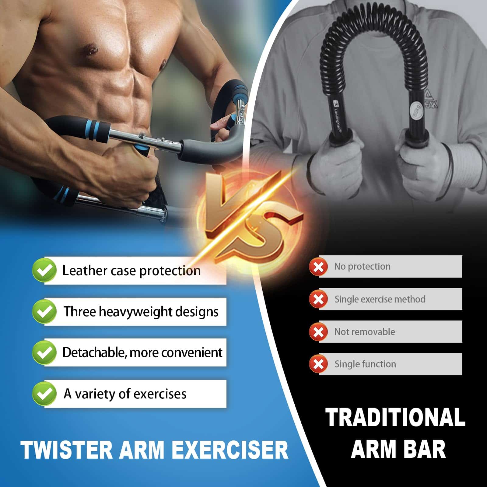 1. EQUIPO DE EJERCICIO DE CUERPO SUPERIOR COMPLETO: ¡Tu Entrenador de Brazos Twister personal y Expansor de Pecho para un Entrenamiento Mortal! Esta Barra de Entrenamiento de Fuerza apunta a múltiples grupos musculares: Construye Fuerza y Músculo en tus Brazos (Bíceps, Tríceps, Antebrazos), Pecho, Hombros y Espalda con este único y versátil Exercitador de Brazos. Obtiene resultados completos de Fitness de Cuerpo Superior en casa.