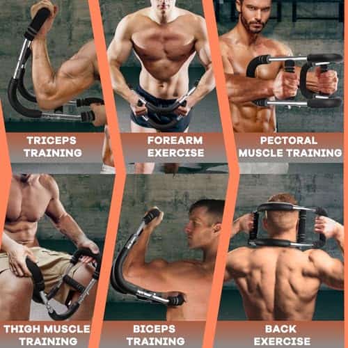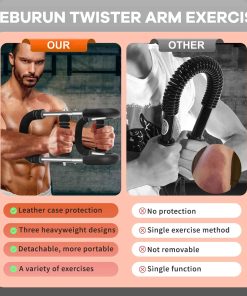 1. Equipo de ejercicio casero único: El entrenador de brazo twister de Geburun es una herramienta de ejercicio compacta y eficiente que ofrece un entrenamiento de cuerpo completo. Su diseño único en forma de U se dirige a áreas como el pecho, muñecas, brazos, espalda, piernas, hombros y músculos del muslo, ayudándote a construir fuerza como un fisicoculturista;.