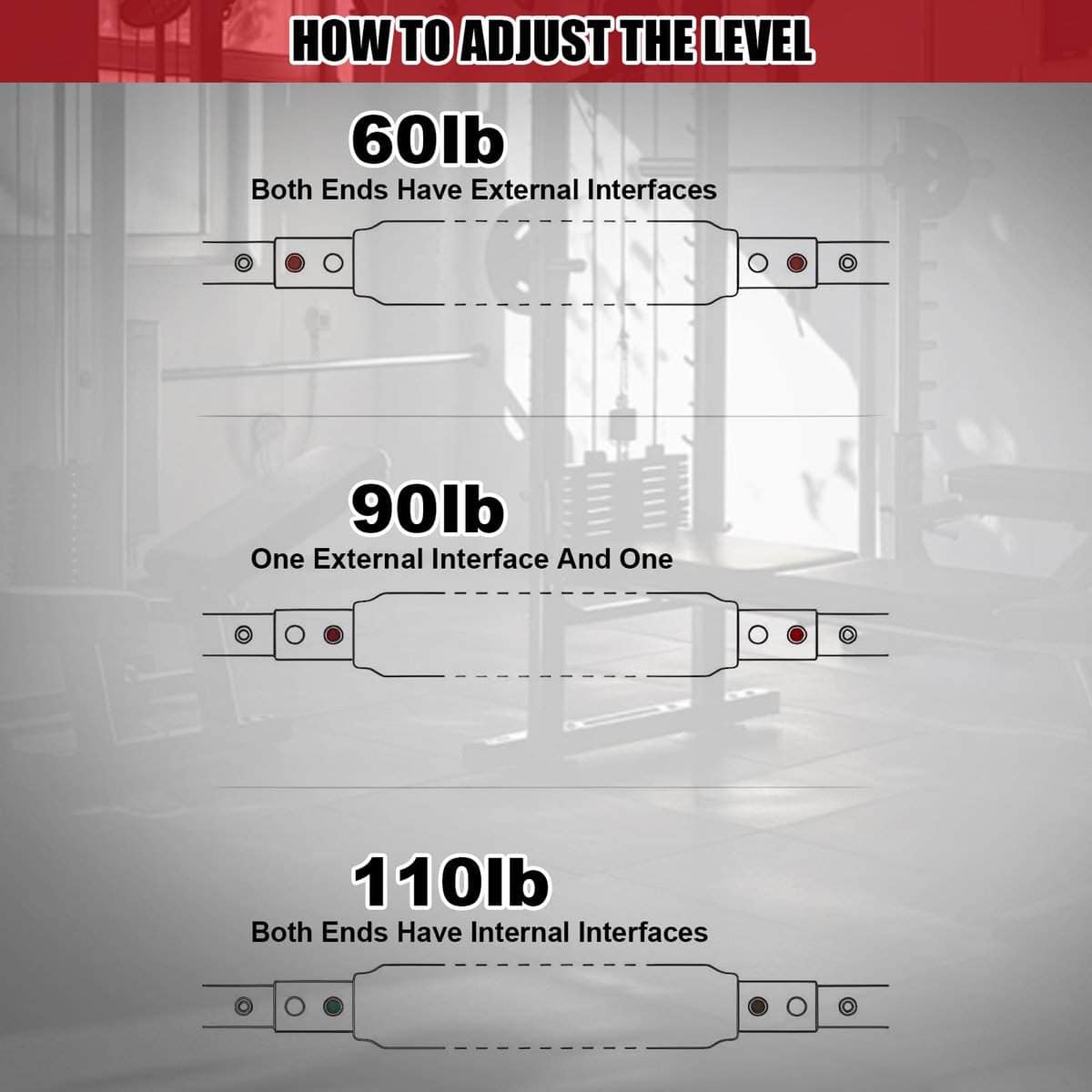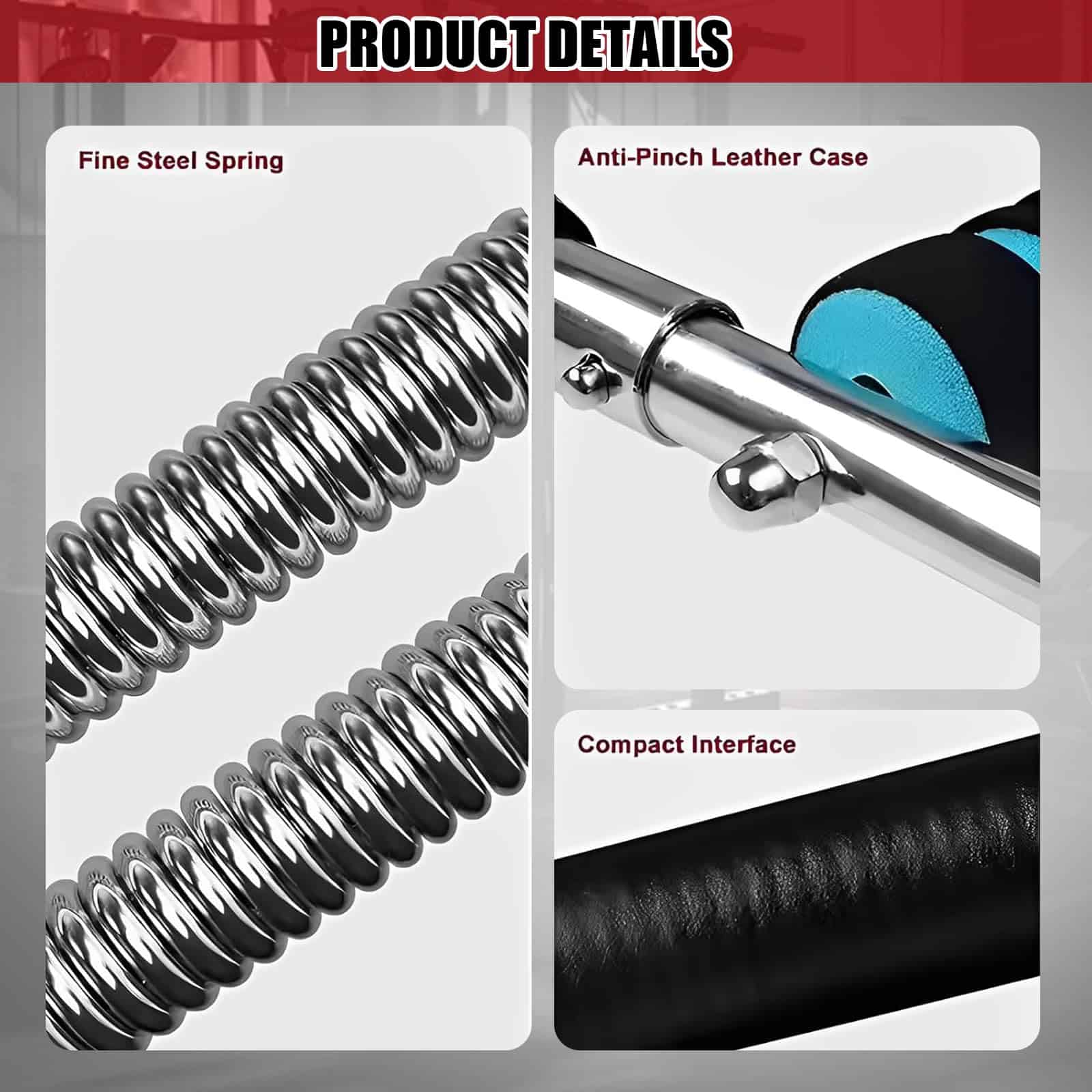 3. Niveles de Resistencia Personalizables: Ajuste la distancia de instalación de las barras de resorte y los agarres para personalizar la intensidad de su entrenamiento. Esto le permite desarrollar fuerza muscular y mejorar el rendimiento de acuerdo con sus objetivos de fitness.