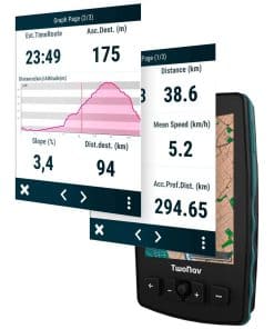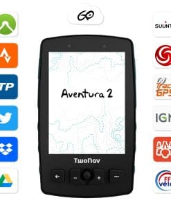 TwoNav Aventura 2 Plus es un GPS de mano con pantalla ancha de 3.7 pulgadas, botones y joystick, ideal para actividades de montañismo, senderismo y motor. Permite realizar viajes de varios días sin tener que recargar el GPS, asegurando un uso ininterrumpido para que puedas centrarte en tus aventuras más extremas. Cuenta con compatibilidad con redes satelitales GPS, Galileo, Glonass, BeiDou, tecnologías Bluetooth dual, Wi-Fi 5G, SBAS-EGNOS, GPRS, dimensiones de 80 x 131 x 31 mm, resolución de 480 x 640 píxeles, peso de 290 gr, autonomía de batería de 36 h, botones frontales y laterales, joystick, memoria interna de 32 GB + ranura para tarjeta de memoria, puerto de comunicación MicroUSB, e incluye mapas de EE. UU., suscripción al planificador de rutas al aire libre, servicio de emergencia y ubicación en vivo, espacio de almacenamiento en la nube virtual y accesorios para bicicleta.