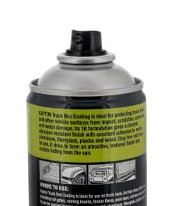 U-POL Raptor 1K Bed Liner Aerosol Negro, 14.3 Onzas Revestimiento de Cama de Camión – Paquete de 6. Puede ser utilizado con todos los rellenos de poliéster U-Pol. Ideal para camas de camiones, portones traseros, estribos, faldones y más. Revestimiento a base de solvente ideal para proteger camas de camiones y todas las demás superficies de metal, aluminio, fibra de vidrio y madera. Específicamente formulado para ofrecer una adhesión superior, resistencia al impacto y abrasión, flexibilidad, así como un acabado texturizado atractivo que proporciona la máxima protección en camas de camiones. Para obtener resultados óptimos en metal desnudo, acero galvanizado y superficies de aluminio, aplique después de lijar con papel de lija de 80-180 granos, 1-2 capas ligeras y uniformes de Raptor Acid Etch Primer Aerosol y permita 30 minutos de tiempo de secado antes de aplicar el Revestimiento de Cama de Camión Raptor 1K.