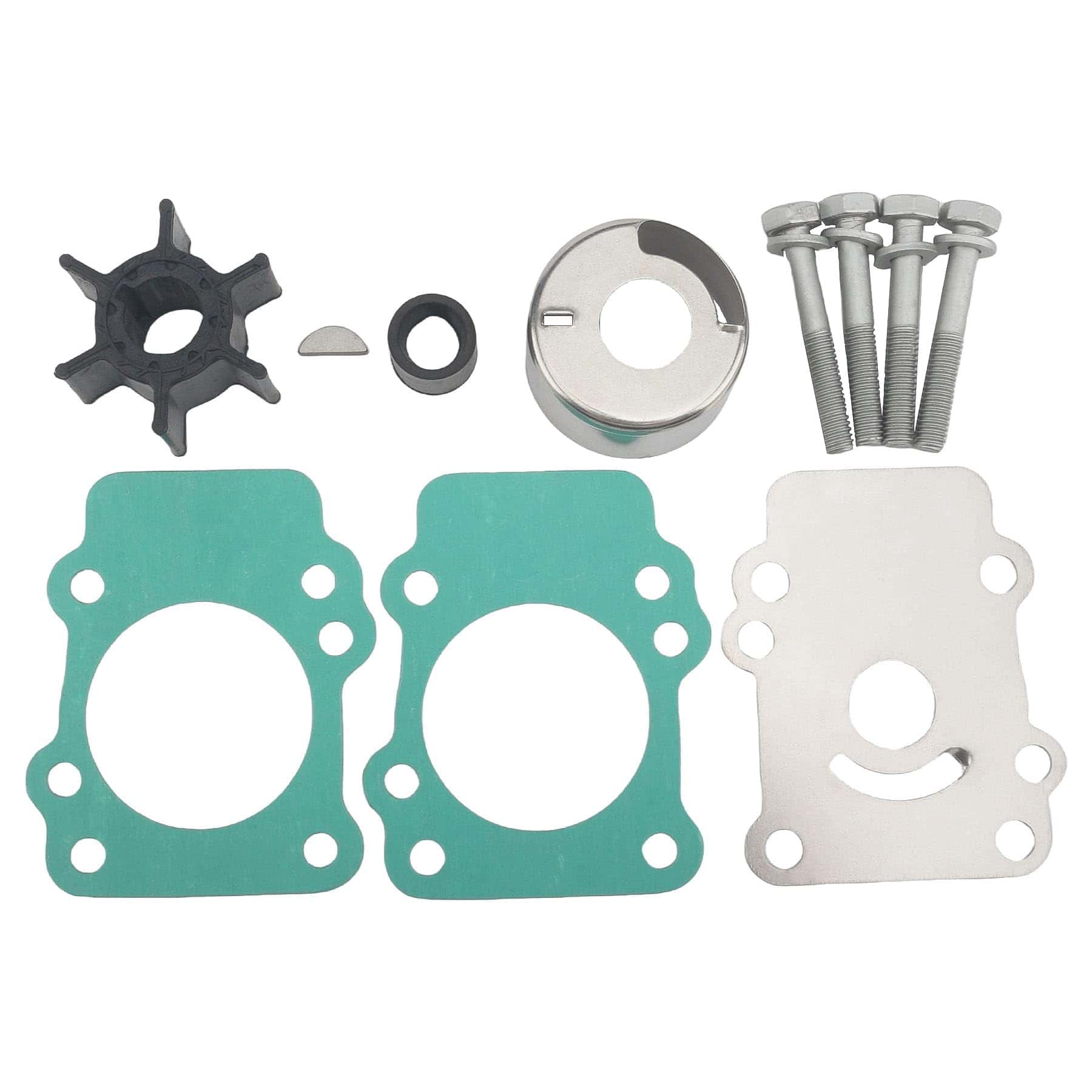 1. Este Kit de Servicio de Reconstrucción de Bomba de Agua para Motores Fuera de Borda es para motores Yamaha de 2 Tiempos 9.9HP 15HP 1982-1995, 4 Tiempos 9.9HP F9.9 T9.9 FT9.9 1982-1996 2004-2005. 2. Reemplace Yamaha Marine Outboard 682-W0078-00, 682W007800, 682-W0078-01-00, 682W00780100, 682-W0078-A1, 682W0078A1, 682-W0078-A1-00, 682W0078A100, 682-W0078-A100, 682-W0078-A2-00, Sierra 18-3148, GLM Marine 12278, 12281. 3. Paquete Incluido: Impulsor de Bomba de Agua, Llave de Woodruff, Placa de Desgaste, Taza de Inserción, Junta de la Bomba de Agua, Amortiguador, Sello de Agua, Perno de Instalación y Arandela. 4. Recomendación: Verifique el reemplazo de su impulsor cada temporada, y reemplácelo cada dos o tres temporadas, para garantizar que el motor funcione sin problemas. 5. Por favor, confirme la compatibilidad y el número OEM cuidadosamente, cualquier problema puede contactarnos y le responderemos lo antes posible