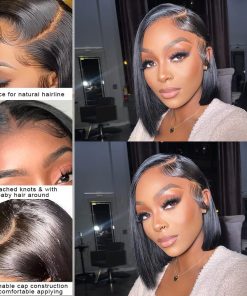 2. Nuestra peluca bob de cabello humano es fiel a su longitud, fiel a las pelucas de densidad de 180%, aspecto original de la parte lateral, peluca de grado 10A con espacio profundo en la parte, puedes decolorar, tenir o restyle esta peluca bob de encaje frontal humano sin enredos ni caídas.