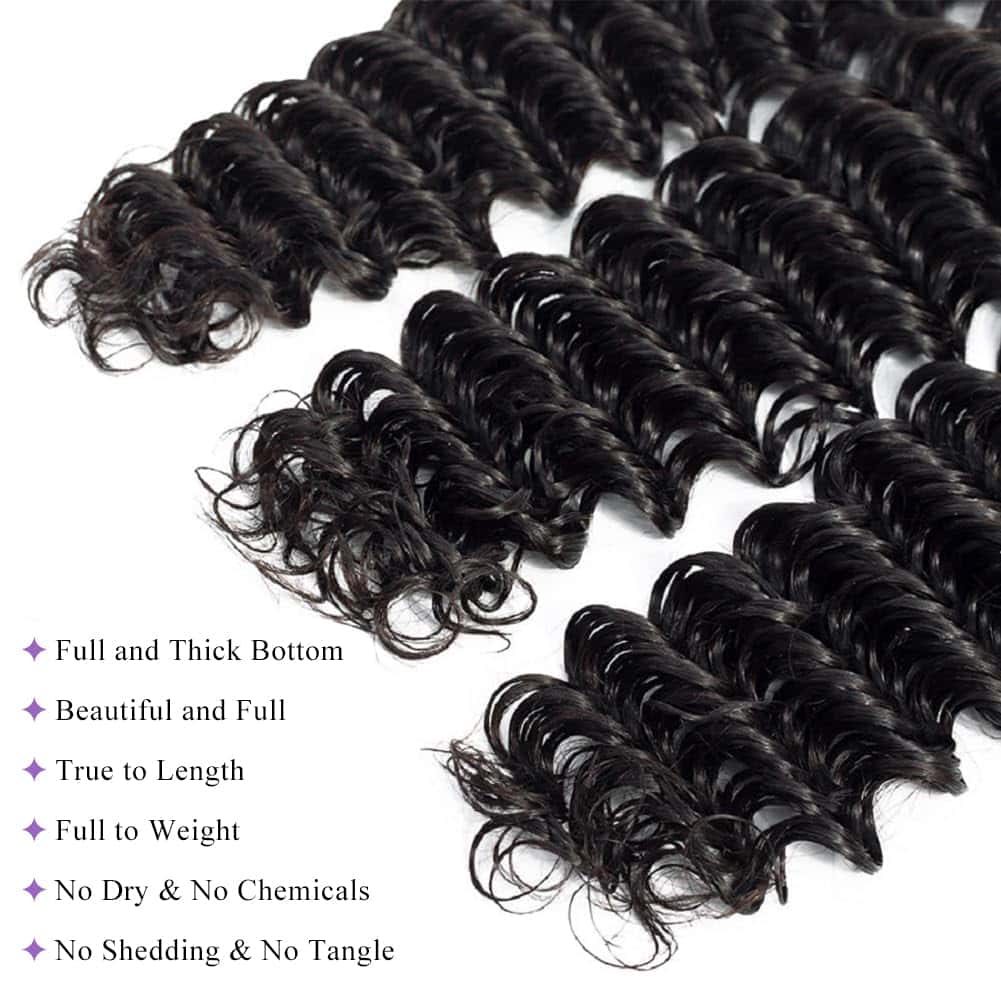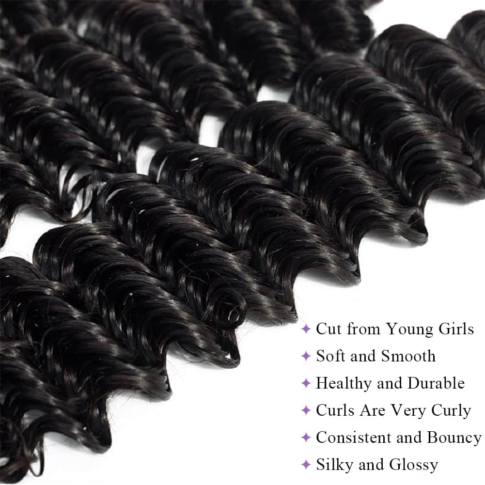 2. Calidad de los Bundles de Cabello Rizado: Brazilian Deep Wave Bundles de Grado 12A, Trama Doble Apretada y Duradera, Sin Caída, Sin Enredo, Puede Ser Decolorado, Teñido, Coloreado, Puedes Alisar, Planchar para Probar Más Estilos, Hacerte Hermoso y Cabello Esponjoso, Puede Usarse Durante 6-12 Meses con Cuidados Cuidadosos.