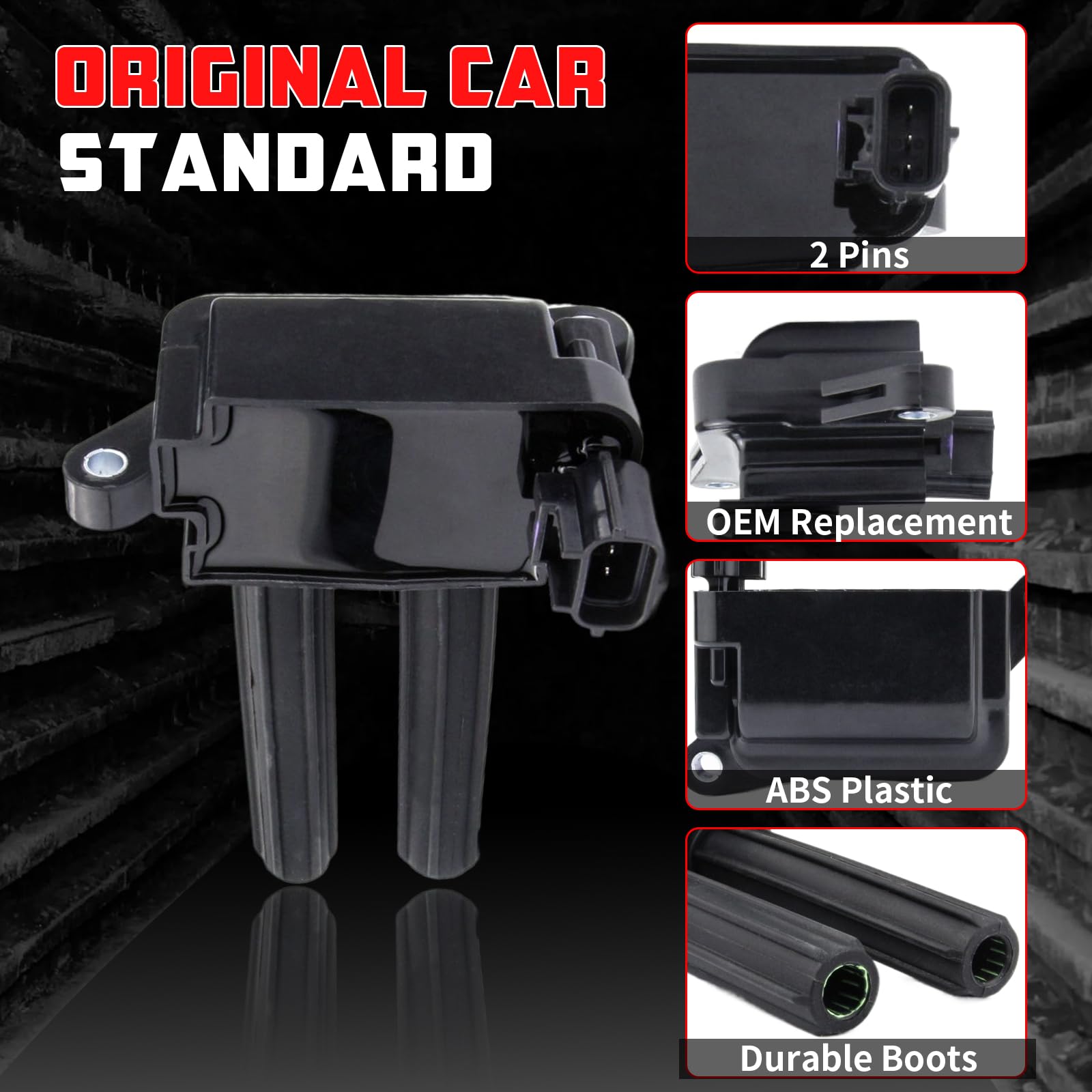 4. Alta Calidad: Las bobinas de encendido KELHILNII están hechas de materiales de primera calidad, resorte de acero inoxidable con supresor de ruido de ferrita interna que evita la interferencia de radiofrecuencia, conector de bobina termoplástico avanzado que garantiza una conexión adecuada y resiste las fracturas causadas por el calor y el ciclo térmico, para transferir mejor el alto voltaje creado por la bujía del motor.
