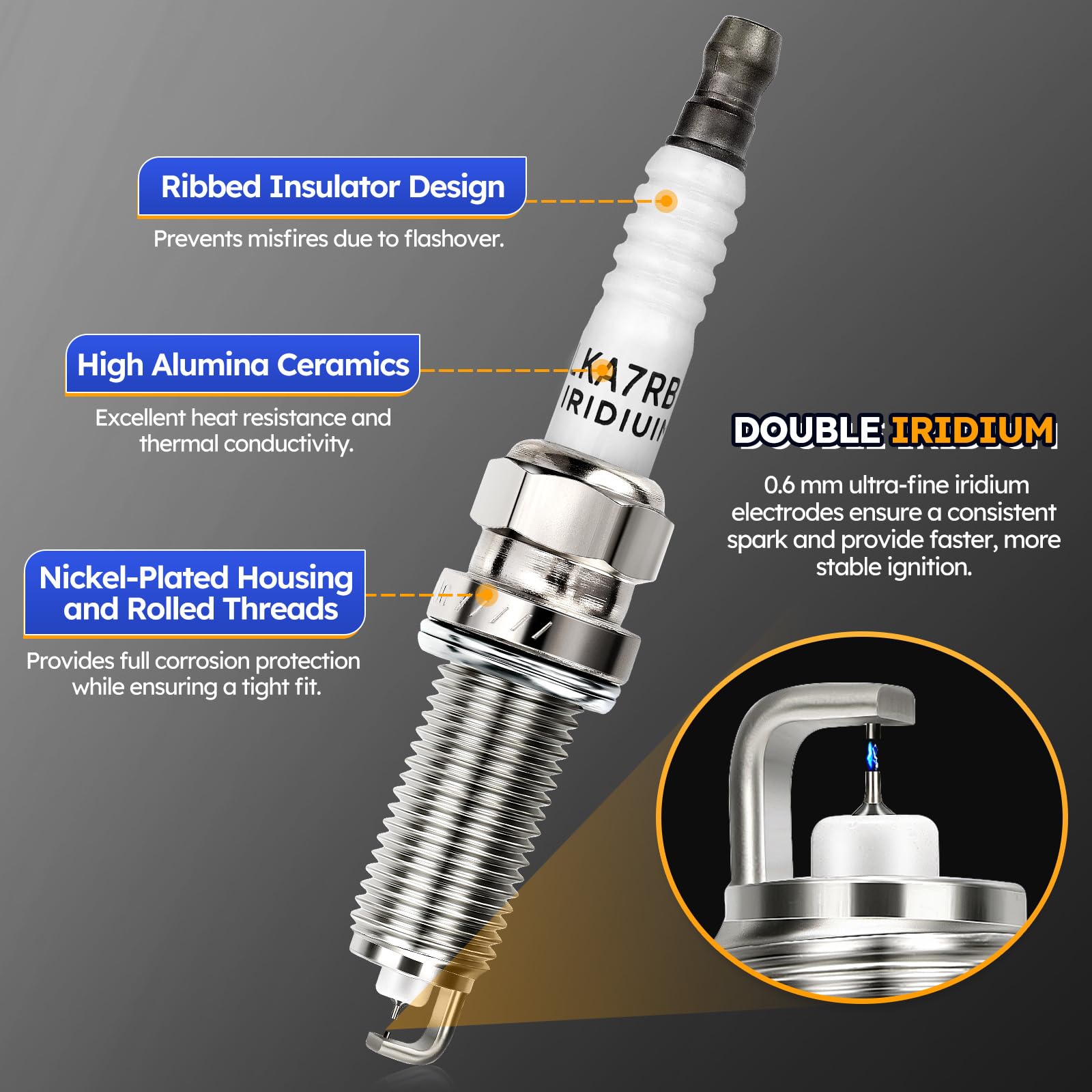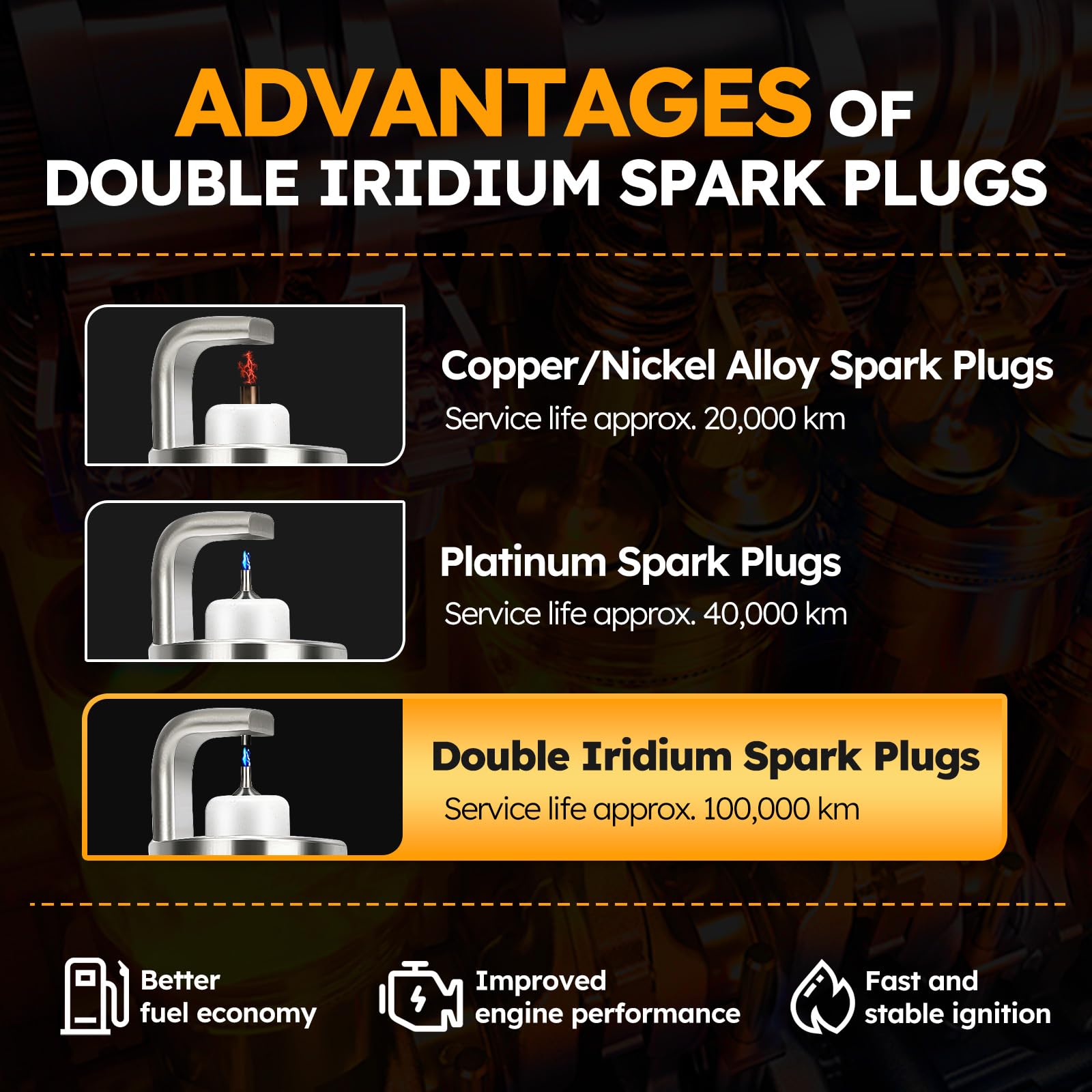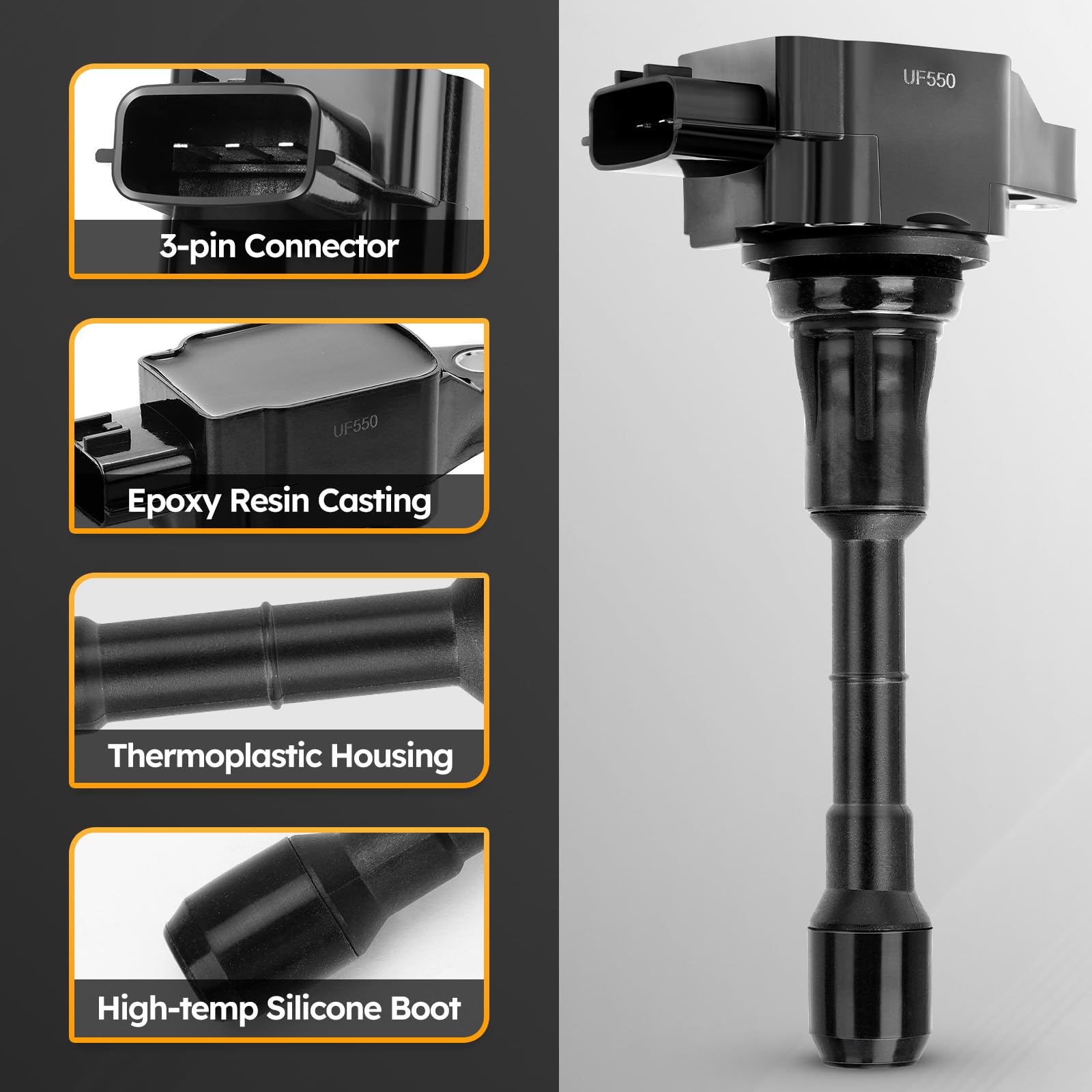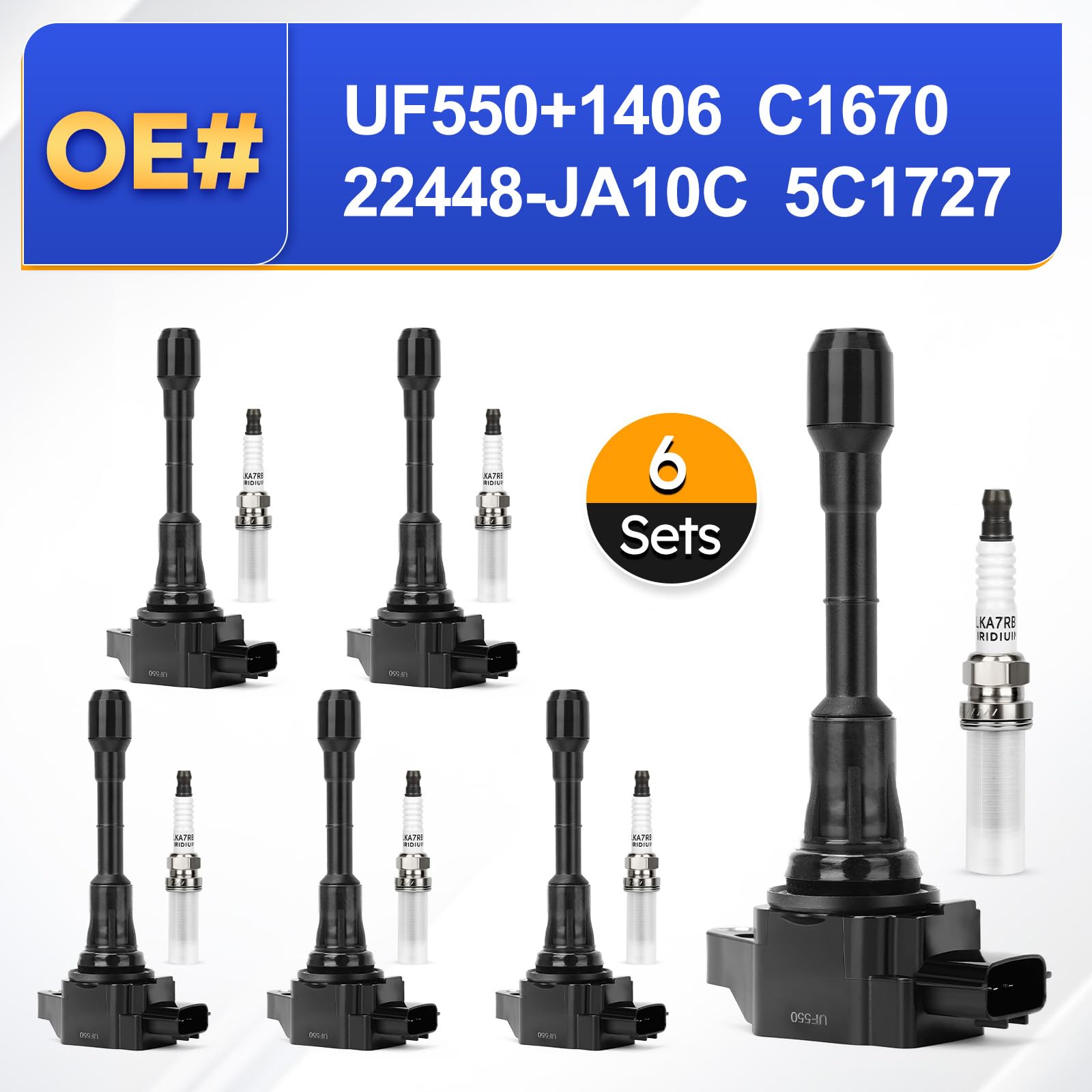 Un paquete de alto rendimiento que incluye una bobina de encendido UF550 y una bujía de doble iridio 1406, diseñado para proporcionar un rendimiento excepcional y una larga vida útil. La bobina de encendido está fabricada con materiales de primera calidad, con un resorte de acero inoxidable y supresor de ruido de ferrita interna para evitar interferencias de radiofrecuencia. La bujía de doble iridio tiene una vida útil mucho más larga, puede funcionar 100,000 kilómetros, proporcionando una chispa constante y estable. Reemplaza a OE C1670, 22448-JA10C, 5C1727. El paquete incluye: paquetes de bobina de encendido x6, bujía de doble iridio x6. No se incluye manual de instrucciones, pero la instalación es fácil. Ofrecemos servicio al cliente las 24 horas y 1 año de garantía del producto. Si tiene problemas con la instalación, la calidad del producto u otros problemas, no dude en contactarnos.