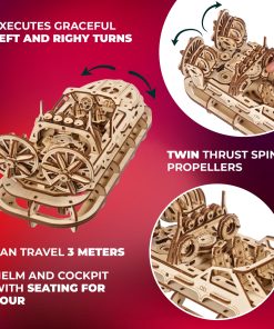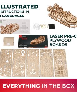 Con 383 piezas pre-cortadas, este kit de barco de madera para armar te mantendrá comprometido durante 6 horas emocionantes. Las detalladas instrucciones en 11 idiomas te guiarán a través del proceso de ensamblaje, mientras que las herramientas adicionales asegurarán un montaje suave y sin problemas. Personaliza tu hovercraft para representar a tus héroes locales o disfruta de su elegante diseño como una obra maestra de construcción de modelos.