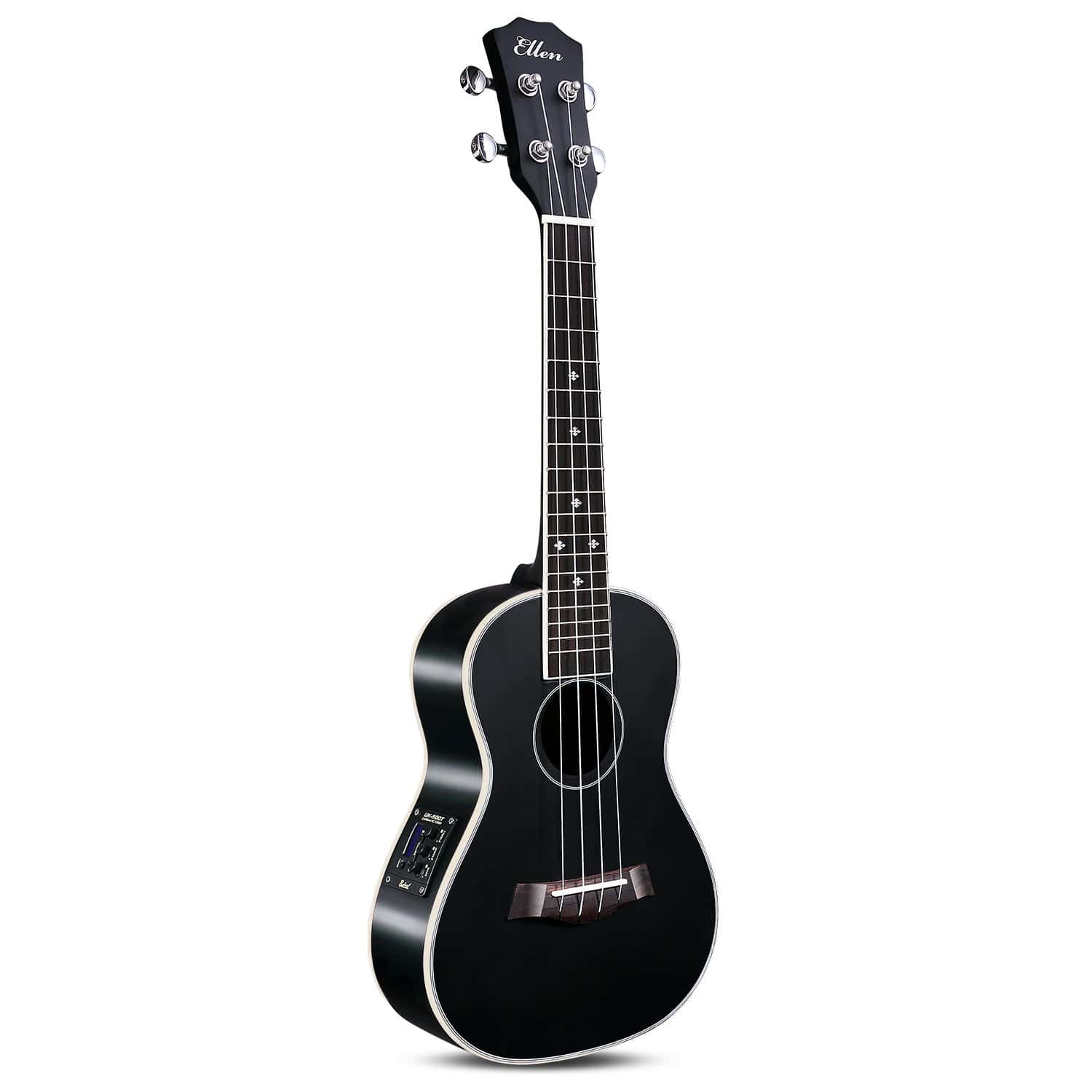 Cuando se trata de equipos musicales de alta calidad, confiables y asequibles, no busques más que en Ellen Musical Instruments y nuestro kit de inicio de ukelele eléctrico! Un ukelele de concierto tradicional de 23″, el suave mástil de cuatro cuerdas, diapasón de palosanto, cuerpo de caoba finamente construido, trastes fluidos y cuerdas de nailon no abrasivas hacen que sea fácil para las manos de los principiantes, permitiéndote ajustarte a las exigencias del rasgueo a tu propio ritmo. La apariencia elegante es igualada solo por su increíble calidad de sonido, mucho más de lo que esperarías de una guitarra ukelele para principiantes típica! El cuerpo pequeño y ligero es perfectamente adecuado para tocar sobre la marcha, fácilmente transportable y favorecido por viajeros de todo el mundo. Ya seas un experto en ukelele eléctrico o estés dando tus primeros pasos en la música, este kit de inicio te proporcionará todo lo que necesitas para aprender, perfeccionarte y entretener a amigos y familiares en los años venideros. Reconocido como uno de los instrumentos más fáciles de aprender, este paquete de ukelele eléctrico es perfecto para principiantes y viene con todo lo que necesitas para comenzar, incluyendo: – Ukelele de Concierto Eléctrico y Acústico de 23″ Con EQ – Estuche Acolchado Ellen de 12mm de Grosor Para Ukelele Eléctrico – Juego de Repuesto de Cuerdas Aquila de Ukelele Eléctrico de Nailon (Italia) – Correa de Ukelele Eléctrico + 3 Púas – Amplificador de Ukelele de Maleta – Adaptador de CA + Batería de 9V Especificaciones Ellen EQ Q580: Controles de EQ de 5 bandas: Graves, Medios, Agudos Afinador cromático de ukelele eléctrico con pantalla retroiluminada LCD Fuente de alimentación: 3V CR2032 X 2 (Incluidas) Consumo de batería bajo NOTA para aquellos que dicen que el amplificador no funciona. El amplificador no funcionará si estás en modo de ajuste. Presiona el botón del afinador a la posición apagada (la pantalla se pondrá oscura) y ¡funcionará!