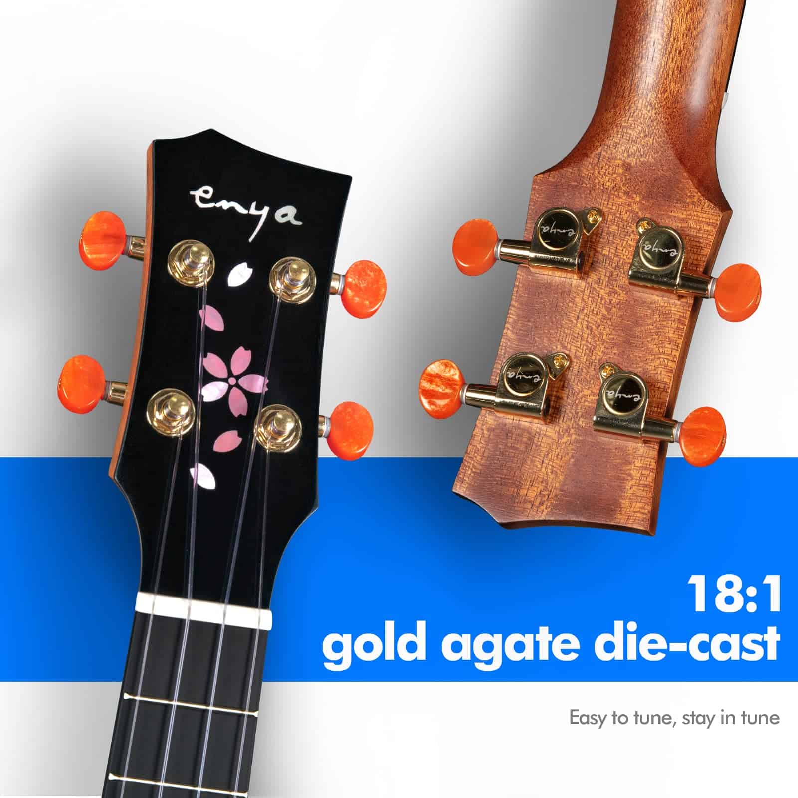 1. Cuerpo de caoba maciza: El cuerpo de caoba maciza permite que el tono cálido se exprese plenamente. Cuenta con un sonido suave y dulce como la imagen del ukelele. 2. Patrón de flor de cerezo: La decoración de flor de cerezo blanco perla en la cabeza hace que este ukelele de concierto sea dulce y único. 3. Clavijas doradas de ágata 1:18: (en lugar de la aleación de zinc chapada en latón de mala calidad); Afinación más fina y estable; Asegura la mejor entonación del ukelele, se mantiene afinado por más tiempo. 4. Fácil de tocar: Las cuerdas de fluorocarbono Enya proporcionan estabilidad y durabilidad del sonido, lo más importante es que es muy fácil de tocar incluso para principiantes. 5. Perfecto para regalos: El ukelele es una buena elección de regalo para todos ustedes, ya sea que hayan probado otros instrumentos o no.