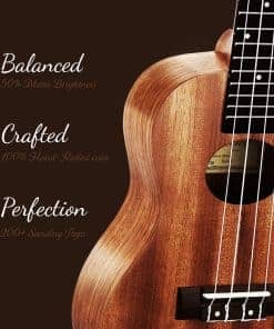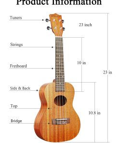 1. Sonido Ulumac: El ukelele está elaborado con madera maciza de caoba cuidadosamente secada al aire, envejecida de forma natural durante 10 años. Este meticuloso proceso resulta en un sonido vibrante y resonante con un tono claro y brillante. Tiene un sustain más largo en comparación con un ukelele laminado. Ya sea que estés tocando en casa o actuando en el escenario, promete una experiencia musical encantadora. 2. Ideal para principiantes: El kit de ukelele viene con todo lo que necesitas para empezar, incluyendo un ukelele de concierto de 23 pulgadas, afinador digital, juego extra de cuerdas, correa, 3 púas de guitarra, paño de limpieza y bolsa de transporte. Ya sea que lo regales o te lo regales, el Ukelele Ulumac es una elección emocionante. 3. Afinación estable: Cada ukelele Ulumac se prueba cuidadosamente para tono antes del envío para asegurarte de que solo necesites ajustes simples para empezar. Nuestro compromiso con los detalles y el diseño considerado, incluyendo un diapasón suave y trastes limpios, garantiza una experiencia de interpretación sin zumbidos y segura. Ya sea que estés tocando solo o con otros, puedes expresar con confianza tus emociones musicales al máximo. 4. Artesanía inigualable: Los ukeleles Ulumac cuentan con cuerdas de nailon italianas, el diapasón y la parte inferior del yugo están meticulosamente elaborados con madera sólida de palisandro seleccionada, brindando comodidad y durabilidad excepcional. Nos comprometemos a ofrecer una calidad de primera para garantizar un excelente tono y facilidad de interpretación. 5. Regalo perfecto: El Ukelele Ulumac es un regalo significativo. Ya sea que estés conmemorando un cumpleaños, una festividad, o simplemente quieras sorprender a tus hijos, seres queridos o amigos, este instrumento aporta alegría y calidez a cualquier ocasión. Al elegir un Ukelele Ulumac, no solo estás adquiriendo un instrumento, sino que también estás abriendo las puertas para explorar el mundo de la música. Ofrece alegría e inspiración interminables a través del hermoso sonido que produce.