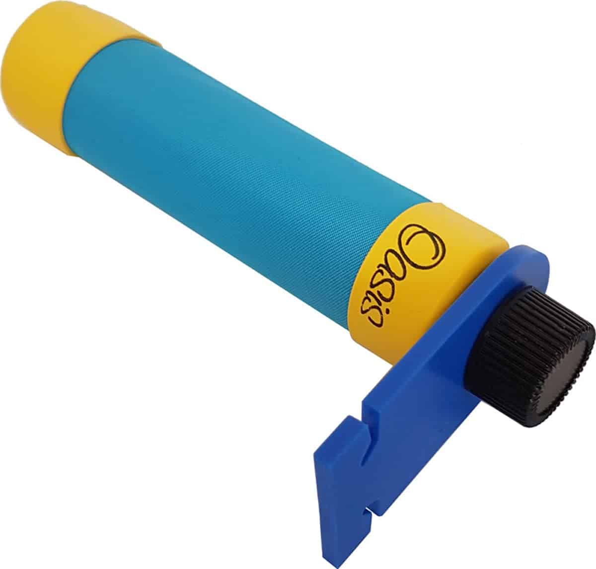 Humidificador de Ukelele Oasis. Con dos características únicas, el sistema de montaje permite que el humidificador cuelgue horizontalmente dentro del ukelele en lugar de vertical (como el humidificador de guitarra). En segundo lugar, la salida de humedad es aproximadamente del 50 por ciento del humidificador de guitarra Oasis Royal Blue, para adaptarse al tamaño más pequeño del instrumento. Esto también permite que el humidificador dure el doble de tiempo entre recargas.