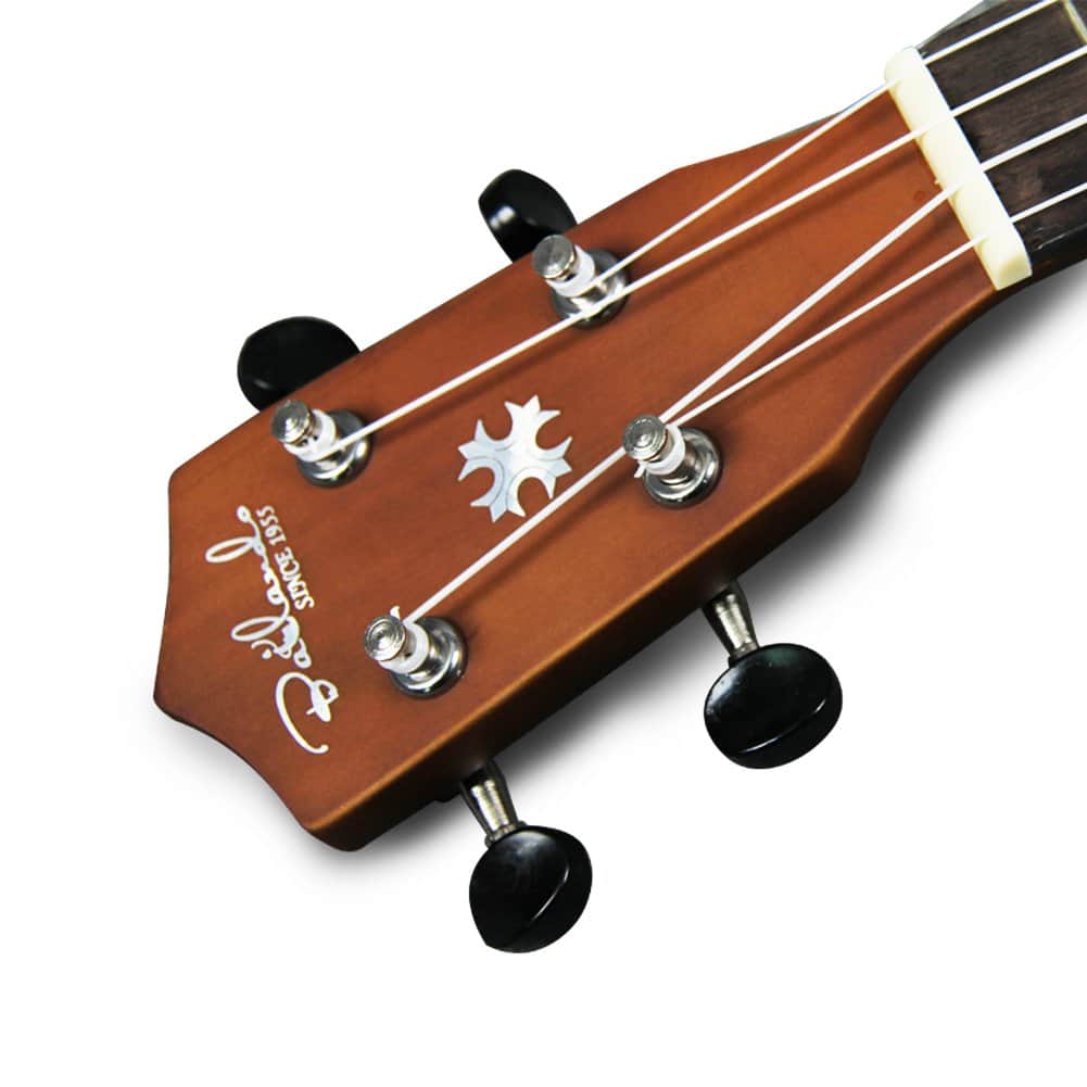 Un ukelele de 21 pulgadas de aspecto hermoso y sonido de alta calidad con todos los accesorios incluidos de forma gratuita. Hecho a mano con materiales de alta calidad. El afinador cerrado completo puede prevenir efectivamente el envejecimiento de la estructura del botón de la perilla para mantener el tono por más tiempo. 12 trastes de latón con marcas de posición en los trastes 5, 7 y 10 en el mástil y la parte superior del diapasón. Correa de alta calidad, muy adecuada para la fogata nocturna, espectáculo o cualquier otra ocasión similar. Funda impermeable acolchada (acolchado de 5 mm), también cuenta con un par de compartimentos grandes para guardar tus accesorios. Cuerdas de nylon extra, garantizan estabilidad de afinación.