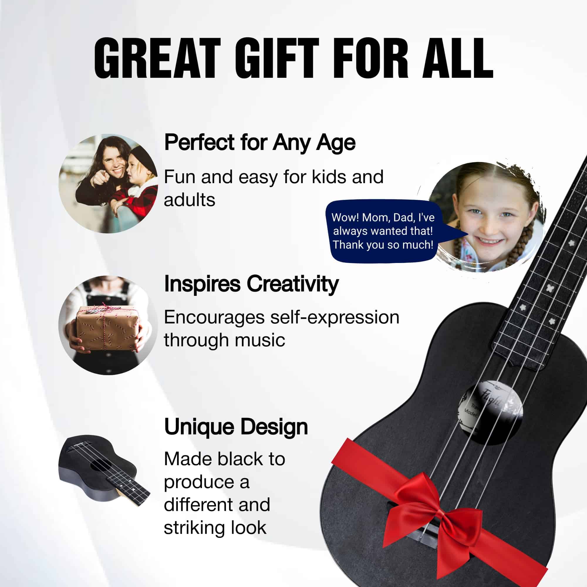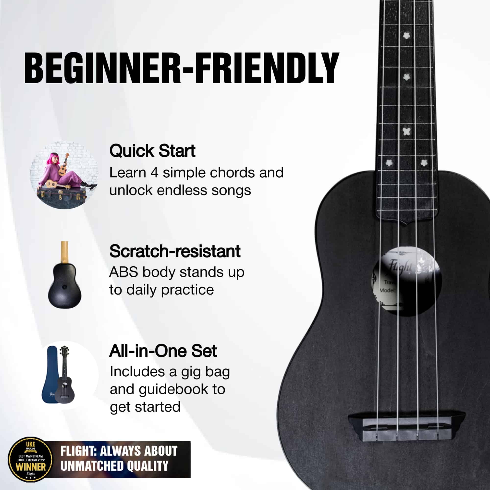 Ukelele Soprano de Viaje Serie Flight de 4 Cuerdas, Negro