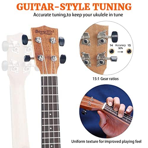 Ukelele Soprano de Viento Fuerte para Principiantes, Caoba