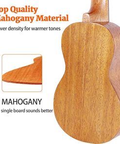 ¿Cuál es la ventaja de este paquete para principiantes de ukelele? – Kit de iniciación de primera calidad con tuerca de hueso de vacuno: Alta densidad, sujeta las cuerdas firmemente, se mantiene en sintonía. – Marca de posición en el diapasón: Total de 18 trastes, marcados en los trastes 5, 7, 10, 12 y 14, fáciles de leer. – Clavijas de afinación suaves y cabezas de afinación cromadas totalmente cerradas: No dañarán las cuerdas, fáciles de afinar, protegen los tornillos de la entrada de polvo. – Adopta cuerdas de nylon Aquila para este instrumento musical: Este ukelele de madera utiliza 4 cuerdas de nylon premium, que no se estiran ni se rompen fácilmente. – Diapasón/Puente de palisandro AAA indonesio: Bonito grano, fácil de pintar, ofrece un sonido brillante y completo para este ukelele tenor de 26 pulgadas. – Clavijas de metal y tuerca de hueso de vacuno real: Fijan las cuerdas de este ukelele hawaiano en la posición correcta, mantienen su afinación, no se deslizan fácilmente. – Ukelele de caoba importado AAA: Mejor material calificado, caoba AAA parte superior / trasera / laterales / mástil con cuerpo dreadnought, produciendo un sonido completo y cálido. – Cómo afinar tu ukelele usando un afinador: 1. Presiona el botón de encendido y mantén 2 segundos para encender el afinador. 2. Coloca el afinador en tu instrumento, ajusta el afinador para obtener el mejor ángulo de visión. 3. Toca una nota única y el afinador muestra el nombre de la nota. Cuando la aguja se mueve hacia el lado izquierdo y la pantalla LCD cambia a azul, indica que la nota está plana, mientras que el lado derecho indica una nota afilada. Si se mueve hacia el centro y la pantalla cambia a verde, la nota está afinada. – Qué incluye el paquete: 1 X Instrumento Ukelele, 1 X Bolsa de Transporte.